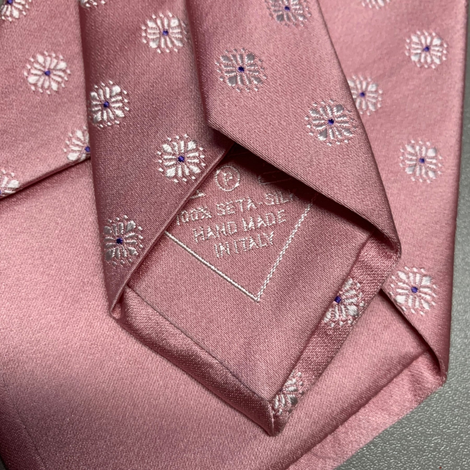 BRIONI necktie in a pink and white silk featuring an floral pattern. Made in Italy.