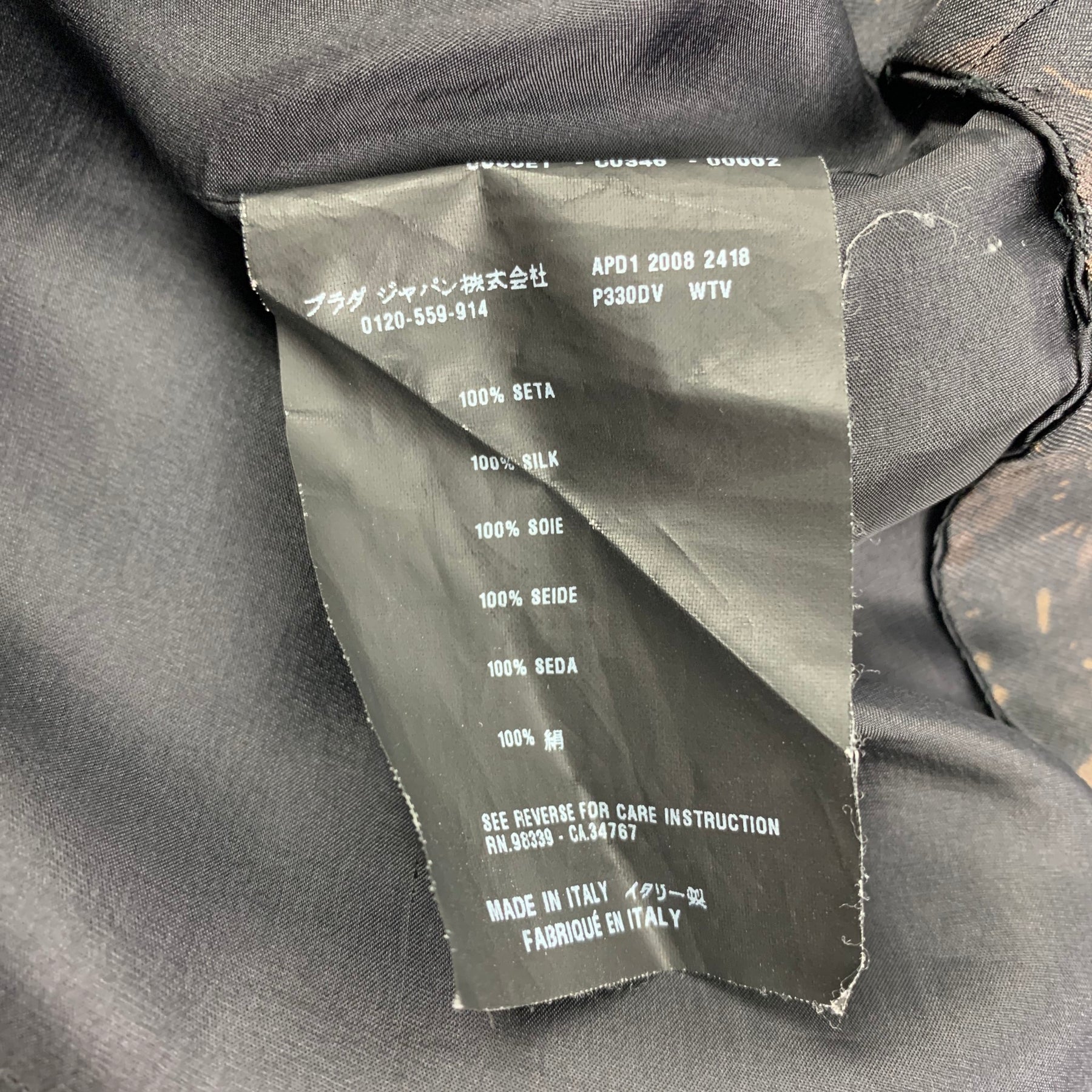 El vestido PRADA viene en seda con estampado de encaje negro y marrón y presenta un estilo de corte A, mangas 3/4 y cierre con cremallera en la espalda. Hecho en Italia.