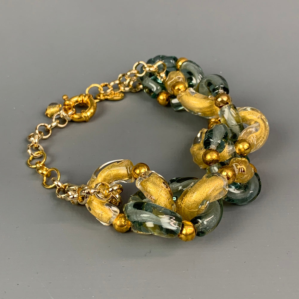 La pulsera STAUER viene en tonos aguamarina y dorado con estilo de eslabón de cadena y cierre de broche. Hecho a mano en Italia.
