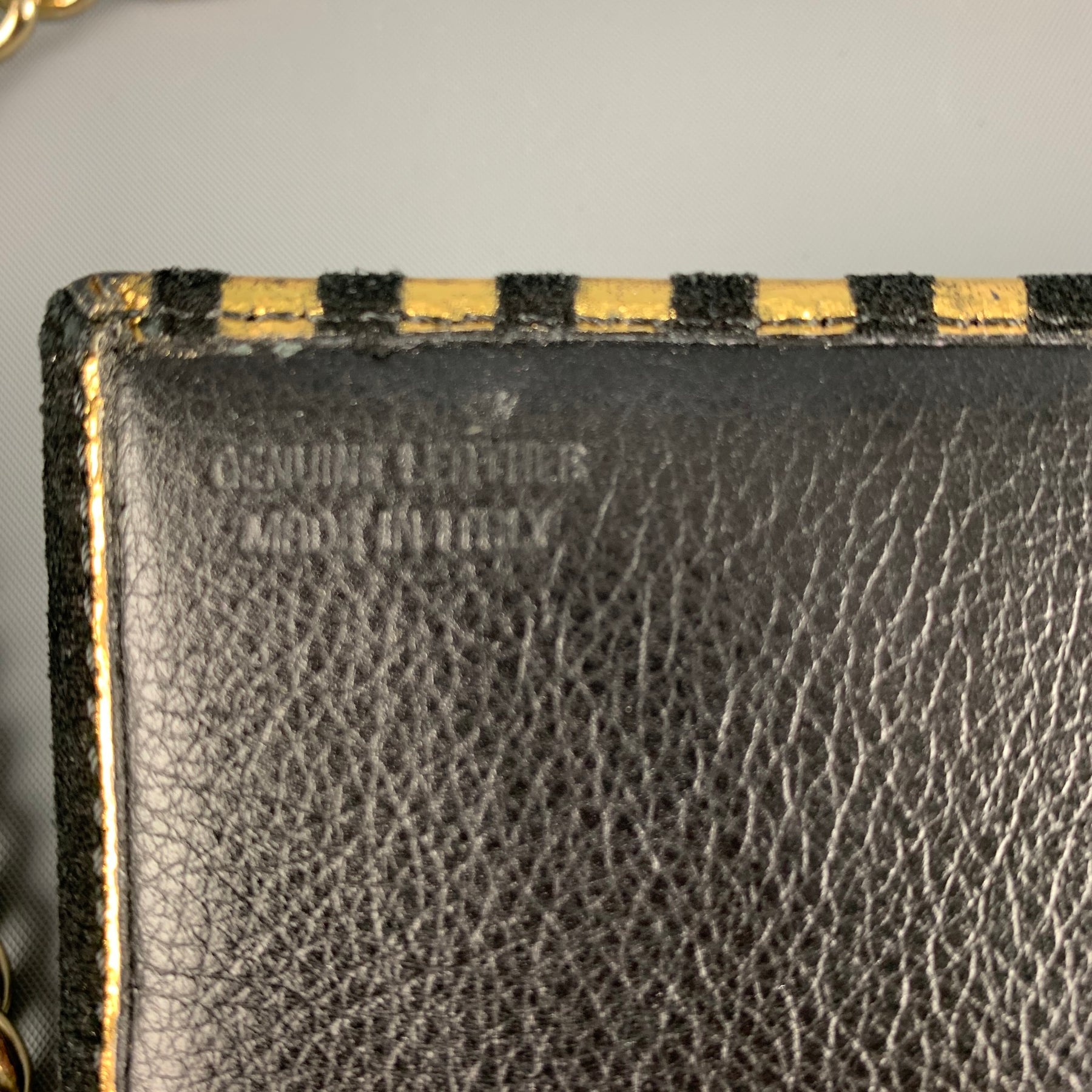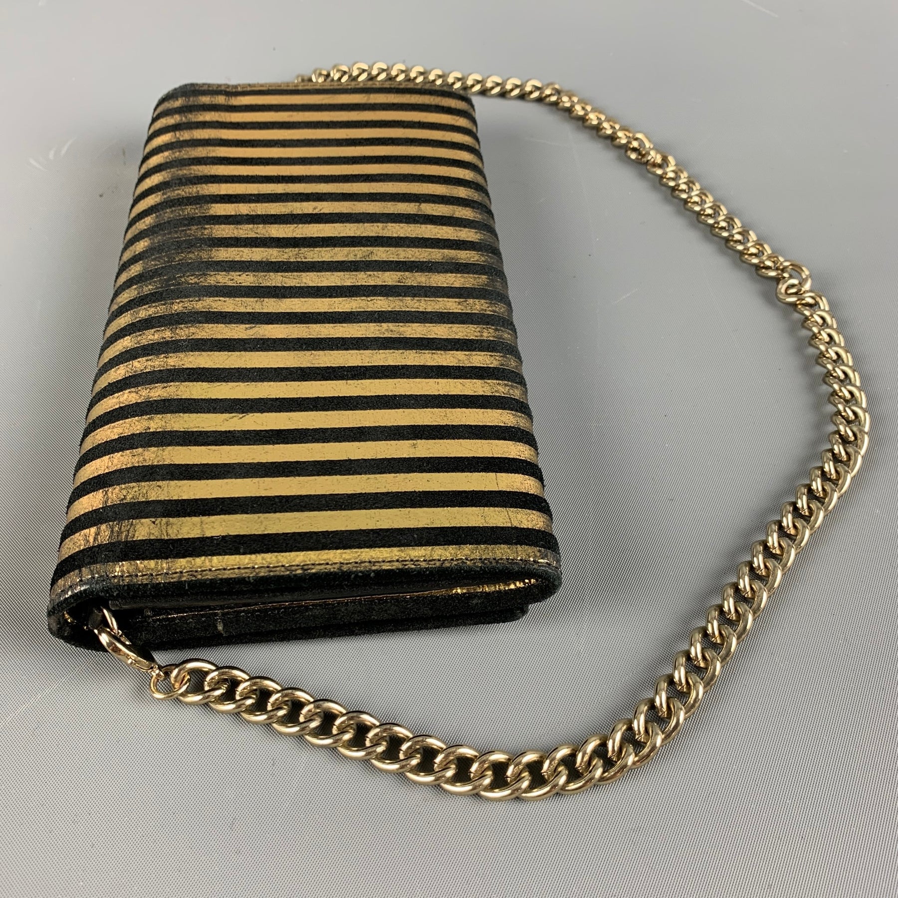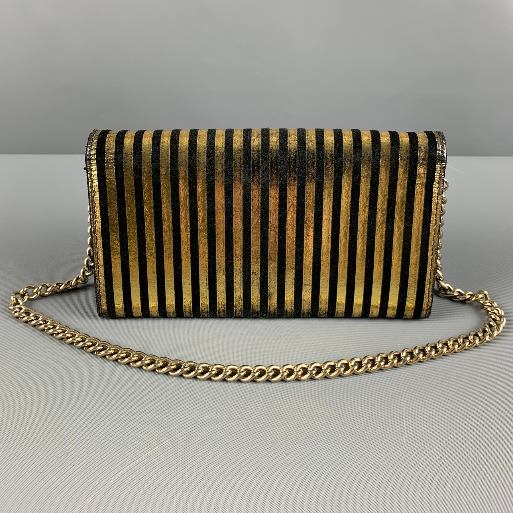 El bolso tipo billetera VIVIENNE WESTWOOD viene en cuero a rayas negras y doradas con ranuras interiores, correa de cadena desmontable en tono dorado y un bolsillo con cremallera. Hecho en Italia.