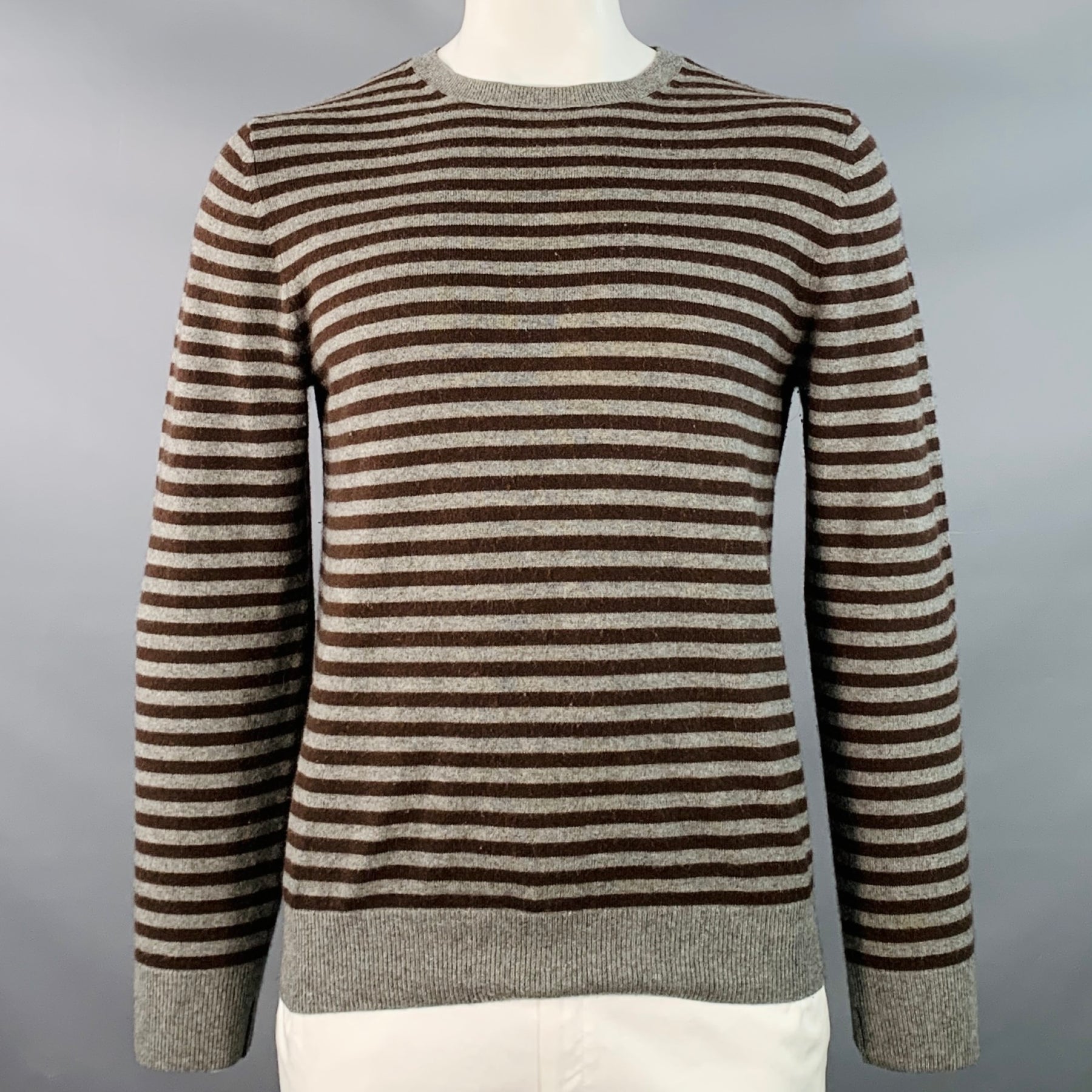 A.P.C. Size L Charcoal Grey Brown Cashmere Stripe Crew Neck Sweater