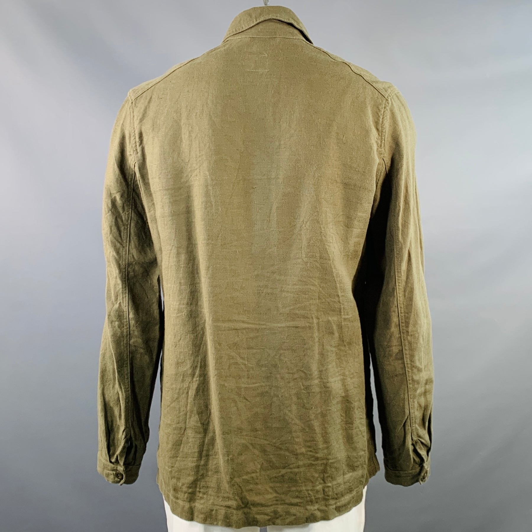 ARPENTEUR Size L Green Olive Woven Linen Chore Jacket