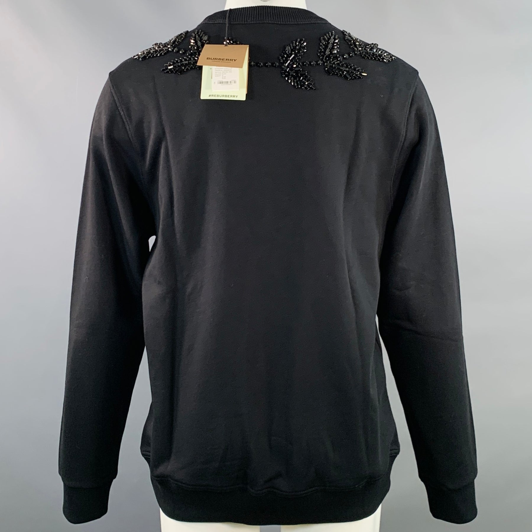 BURBERRY Size M Black Crystal Embellishment Cotton Crew Neck Sweatshirt