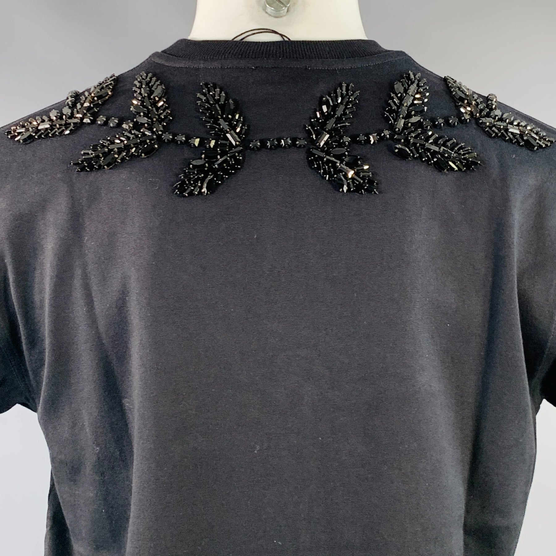 BURBERRY Size XS Black Crystal Embellishment Cotton Crew-Neck T-shirt