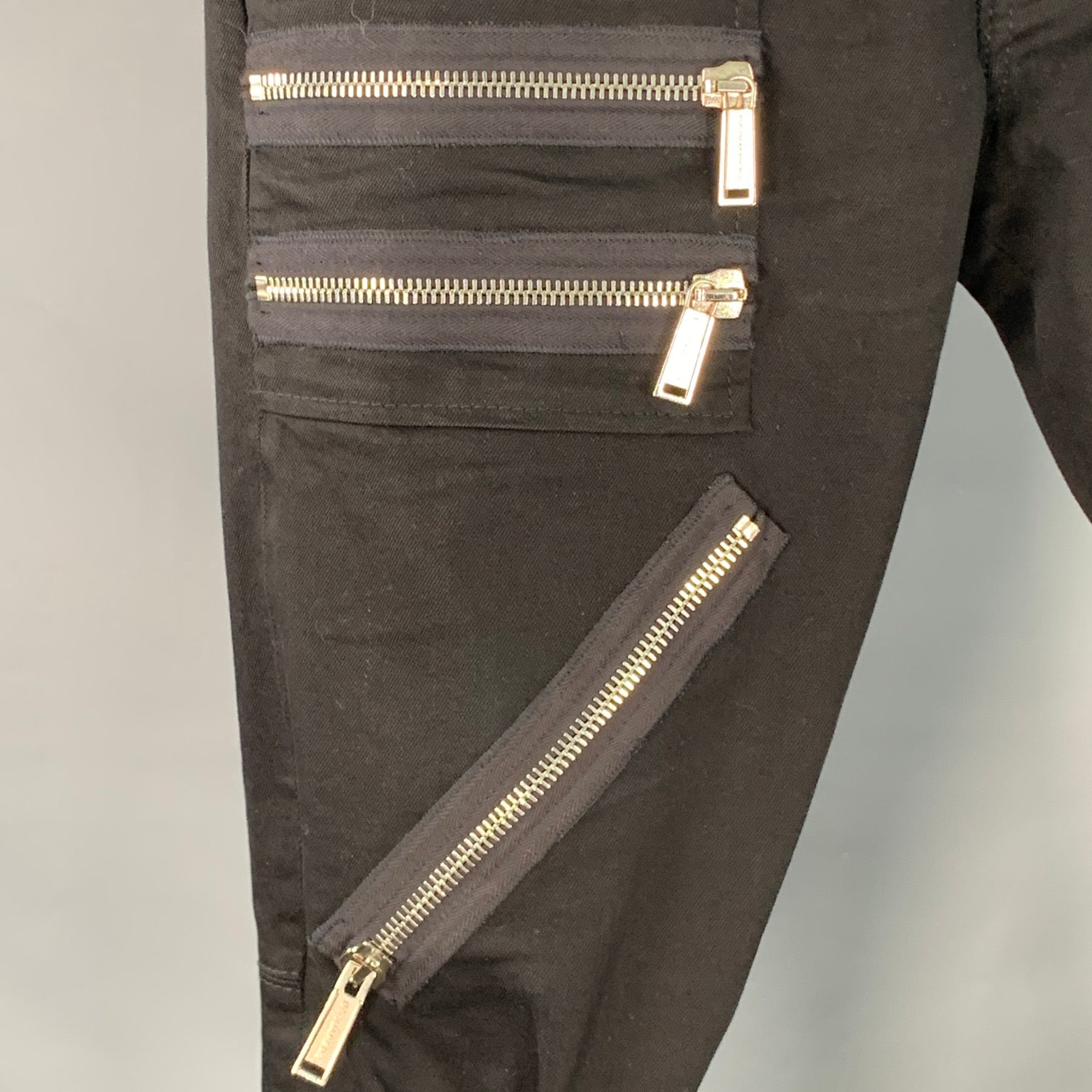 DSQUARED2 Size 34 Black Silver Denim Zippers Button Fly Biker Casual Pants