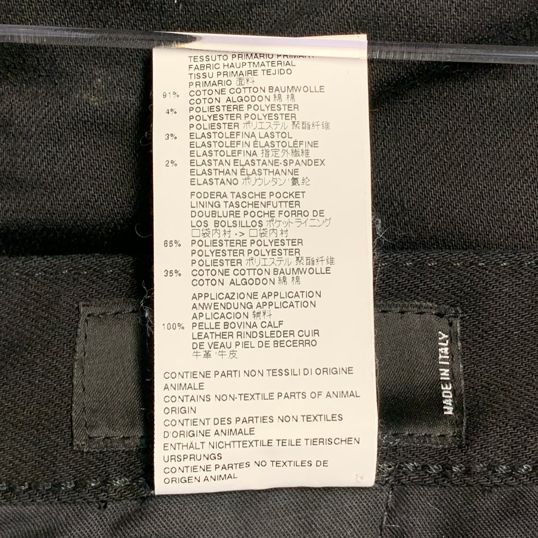 DSQUARED2 biker casual pants in a black cotton stretch blend denim twill featuring multiple silver tone metal zippers, shin zippers to adjust the silhouette of the  garment, and button fly closure. Made in Italy.