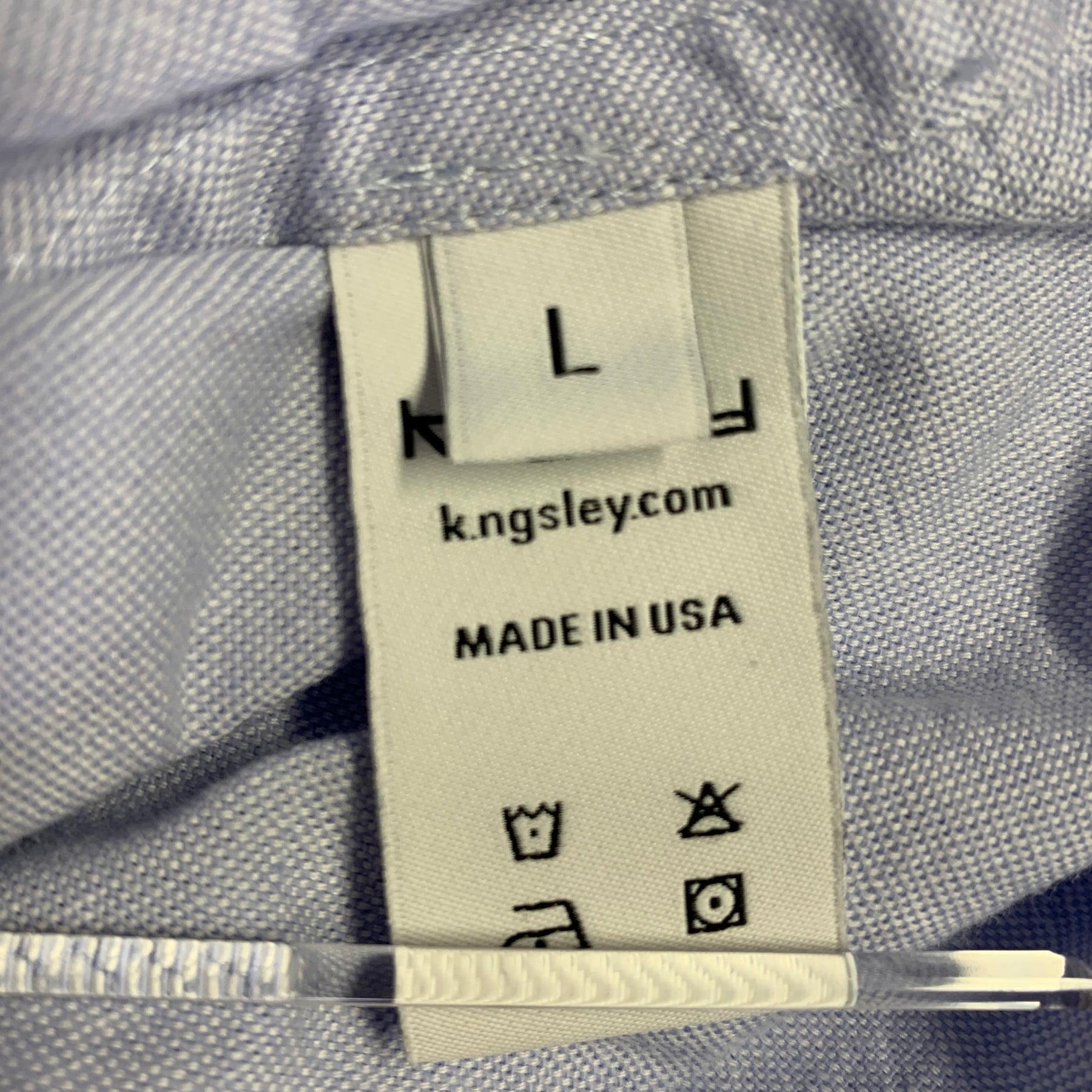 K.NGSLEY Size L Blue Woven Cotton Hidden Placket Long Sleeve Shirt