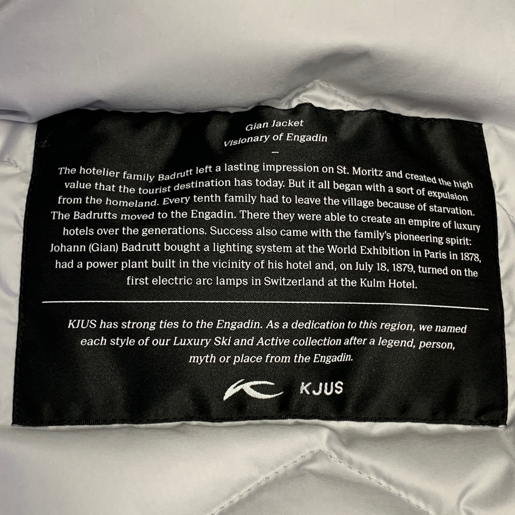 KJUS "Gian" ski jacket in a black polyamide fabric featuring a hooded style, cozy down filling, and zip & snaps closure.