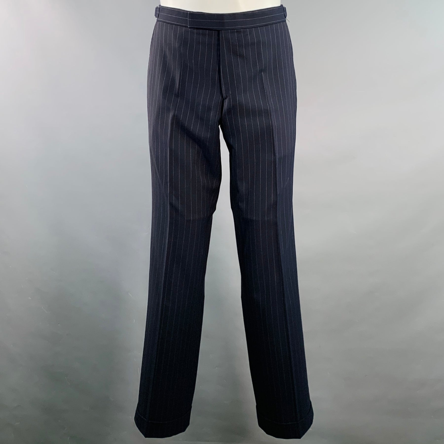 RALPH LAUREN Size 38 Regular Navy Grey Pinstripe Wool Notch Lapel Suit
