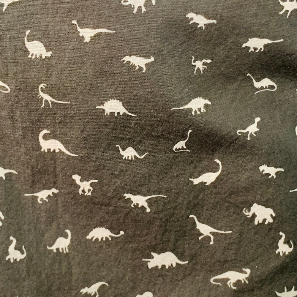 LANVIN Size M Grey Slate Dinosaurs Cotton Spread Collar Long Sleeve Shirt
