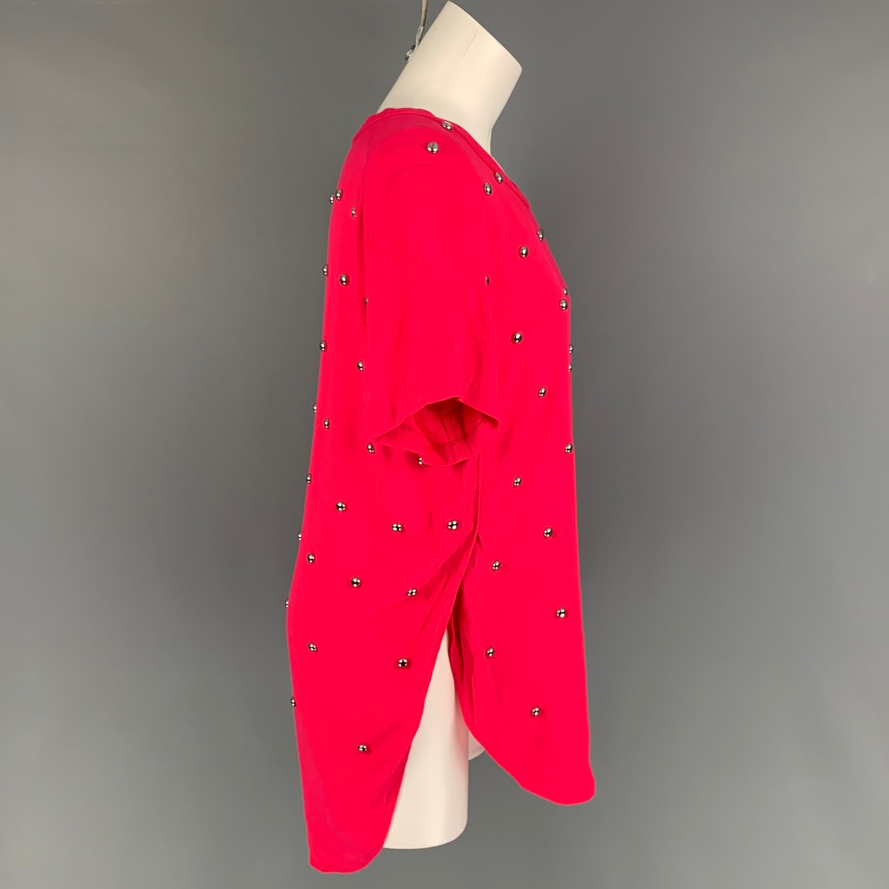 3.1 PHILLIP LIM dress top comes in a pink viscose with a silver tone studded design throughout featuring a side slit and a crew-neck.