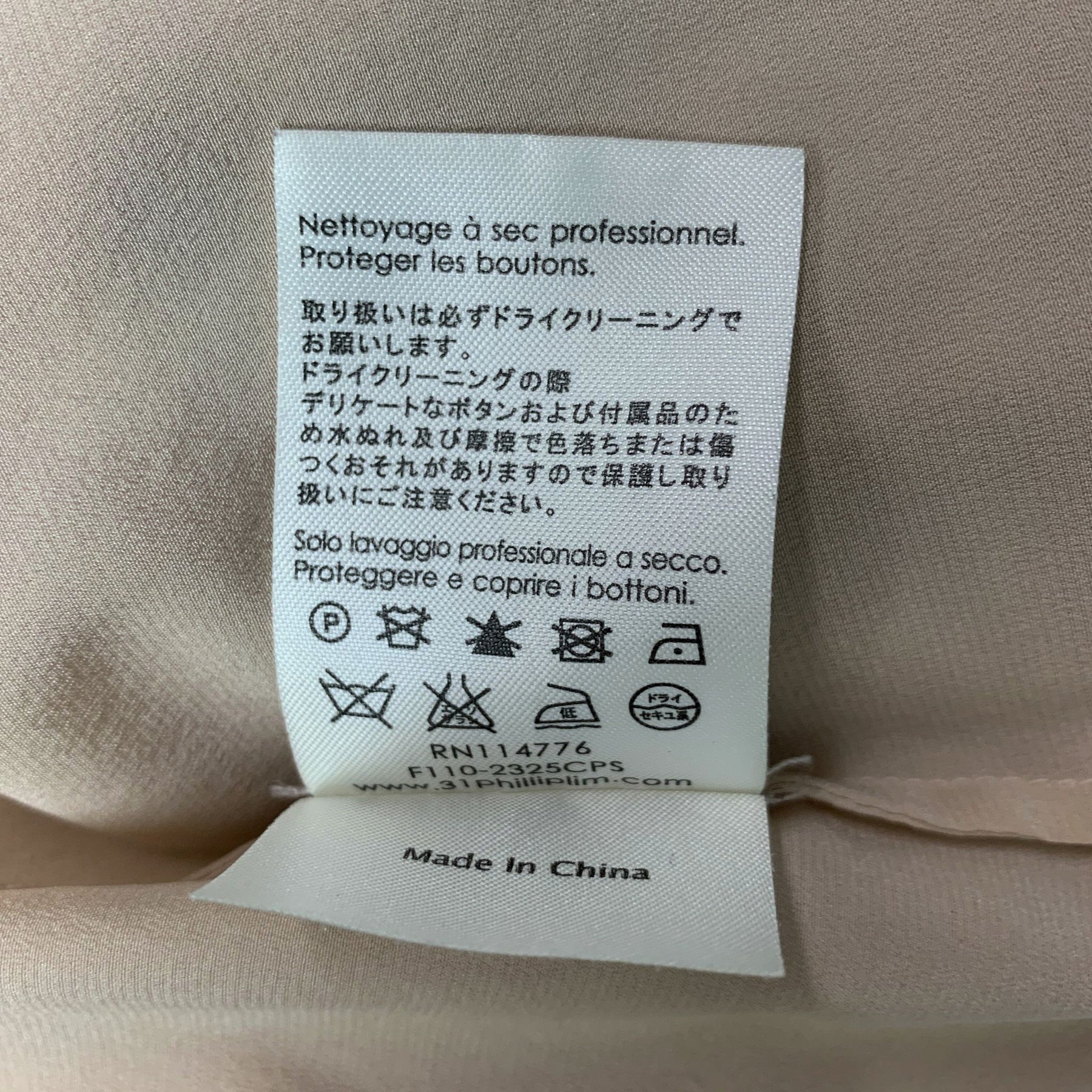 3.1 PHILLIP LIM Size 8 Beige Silk & Elastane Long placket Blouse