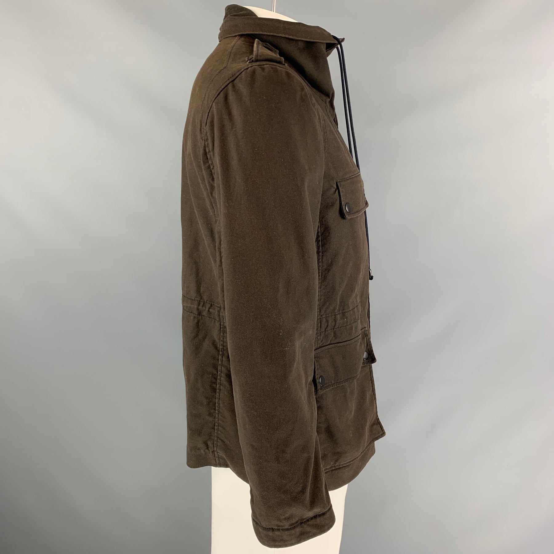 3.1 PHILLIP LIM coat comes in a brown cotton with a full liner featuring a high collar, utility style, front pockets, drawstring, epaulettes, and a snap button closure.