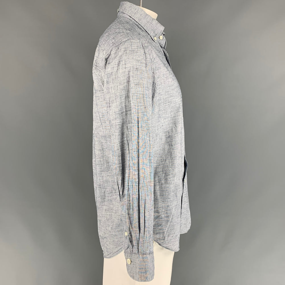 45rpm long sleeve shirt comes in a light gray heather cotton featuring a button down collar, front pocket, and a buttoned closure. Made in Japan.
