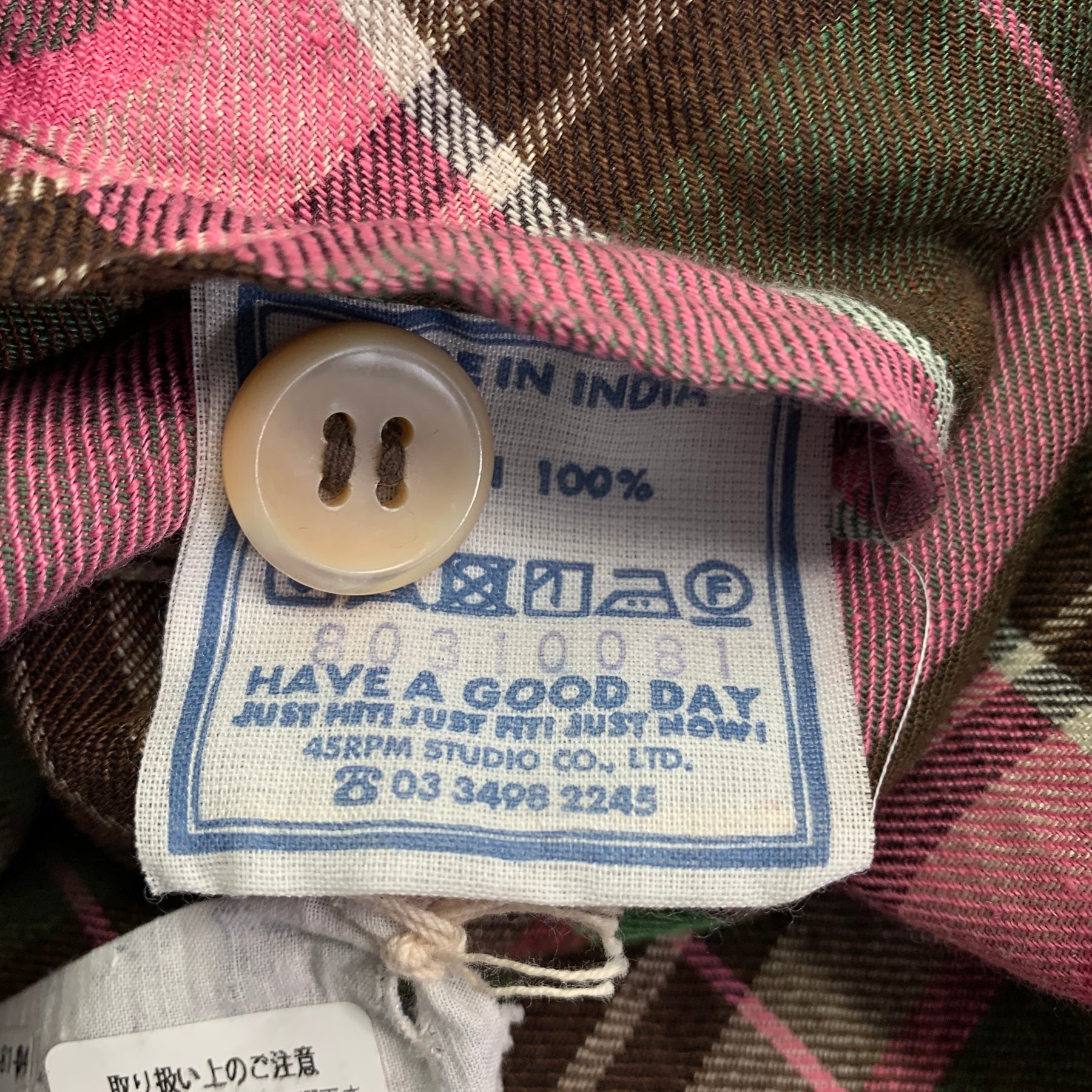 45rpm Size XL Pink Brown Green Plaid Linen Notch Lapel Jacket