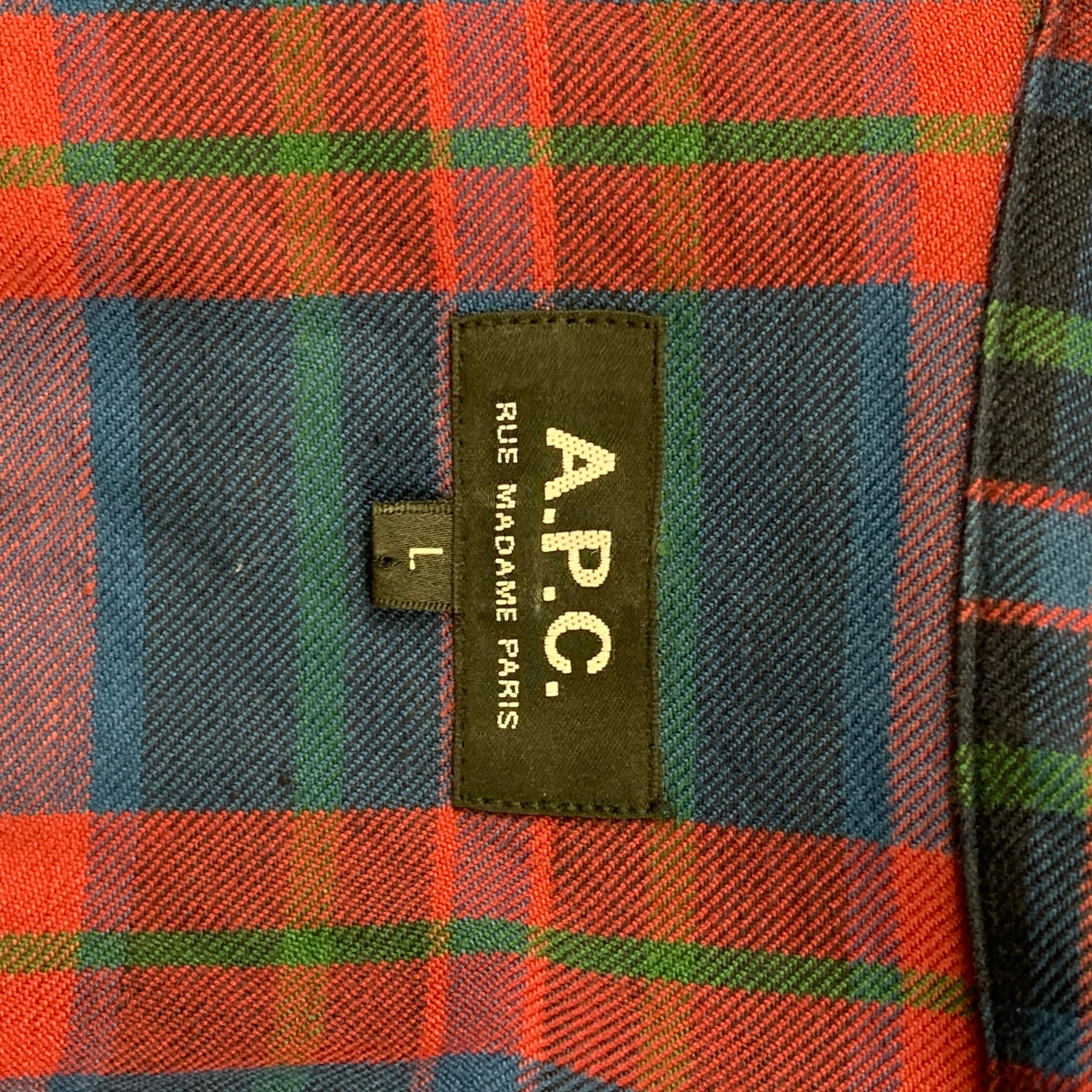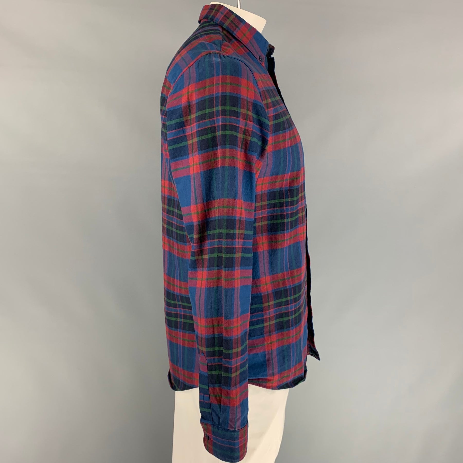 A.P.C. Size L Blue & Red Plaid Cotton / Linen Button Down Long Sleeve Shirt