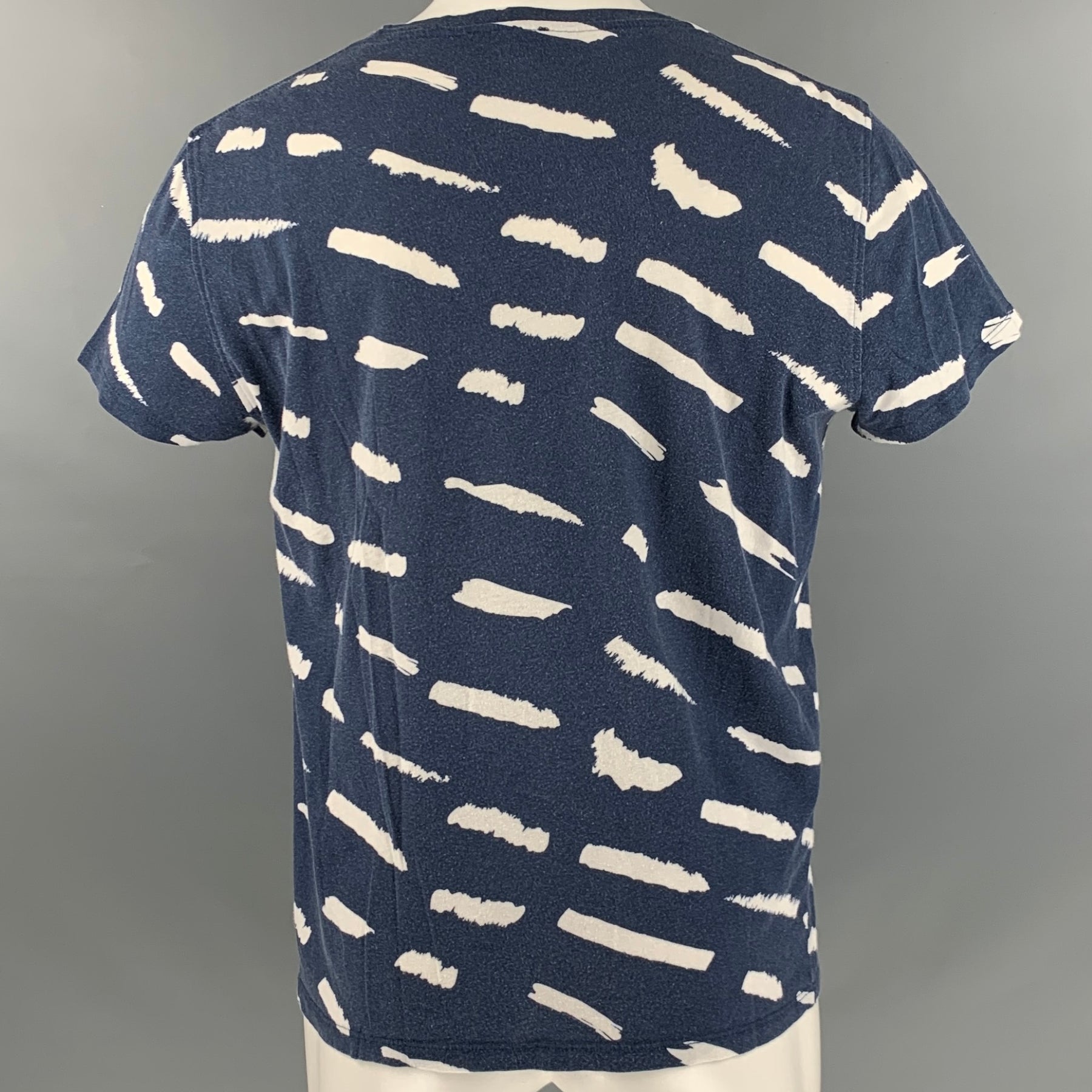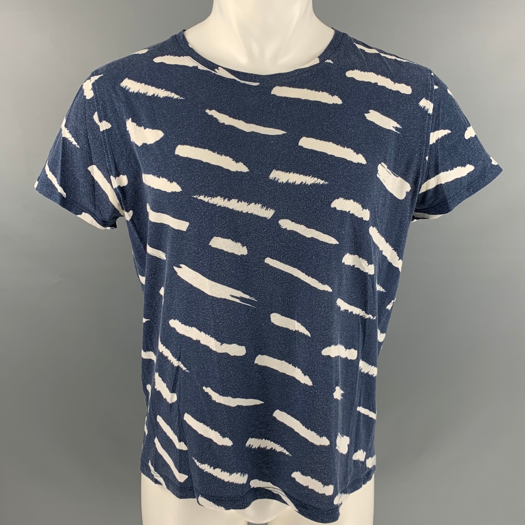 A.P.C. Size M Navy White Graphic Cotton Linen Crew-Neck T-shirt