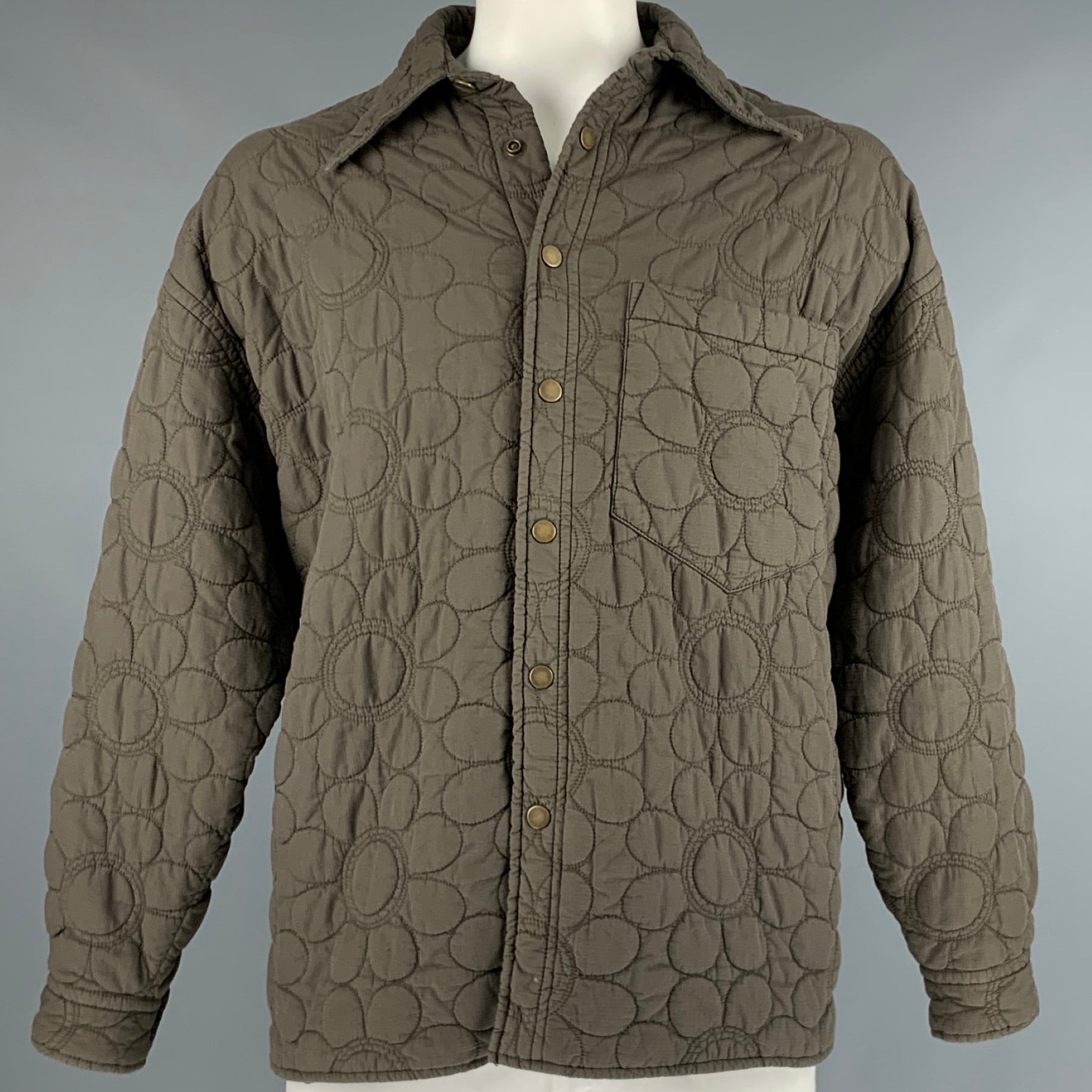 ACNE STUDIOS Size 46 Green Olive Quilted Cotton Snaps Coat