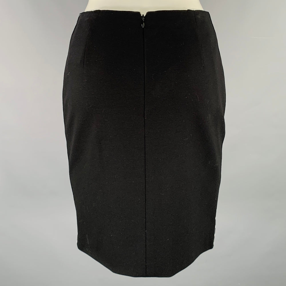 AKRIS Size 2 Black White Viscose Blend Polka Dot Lambskin Pencil Skirt