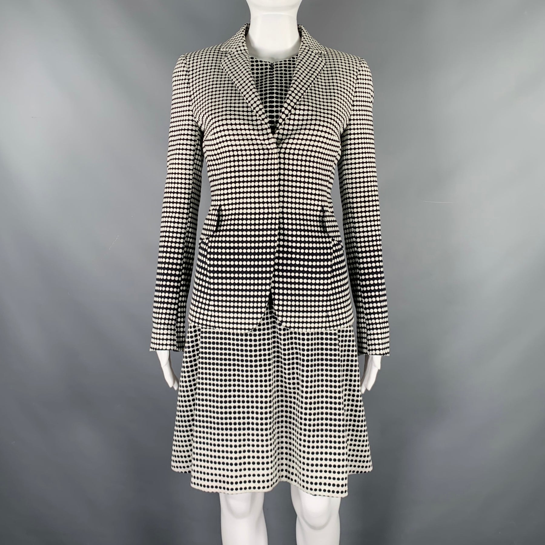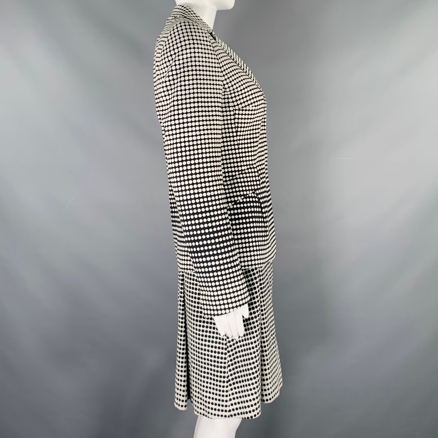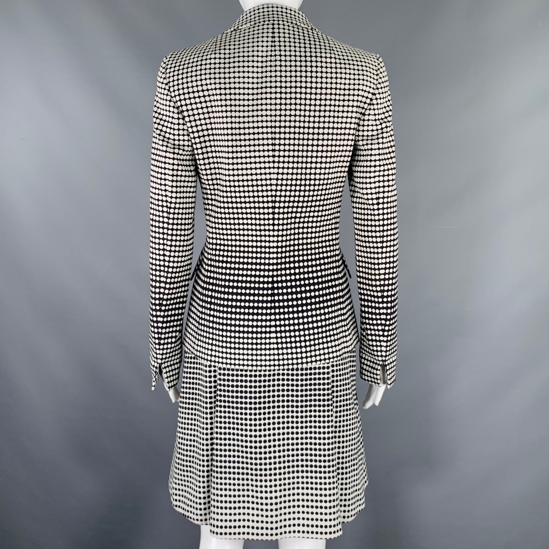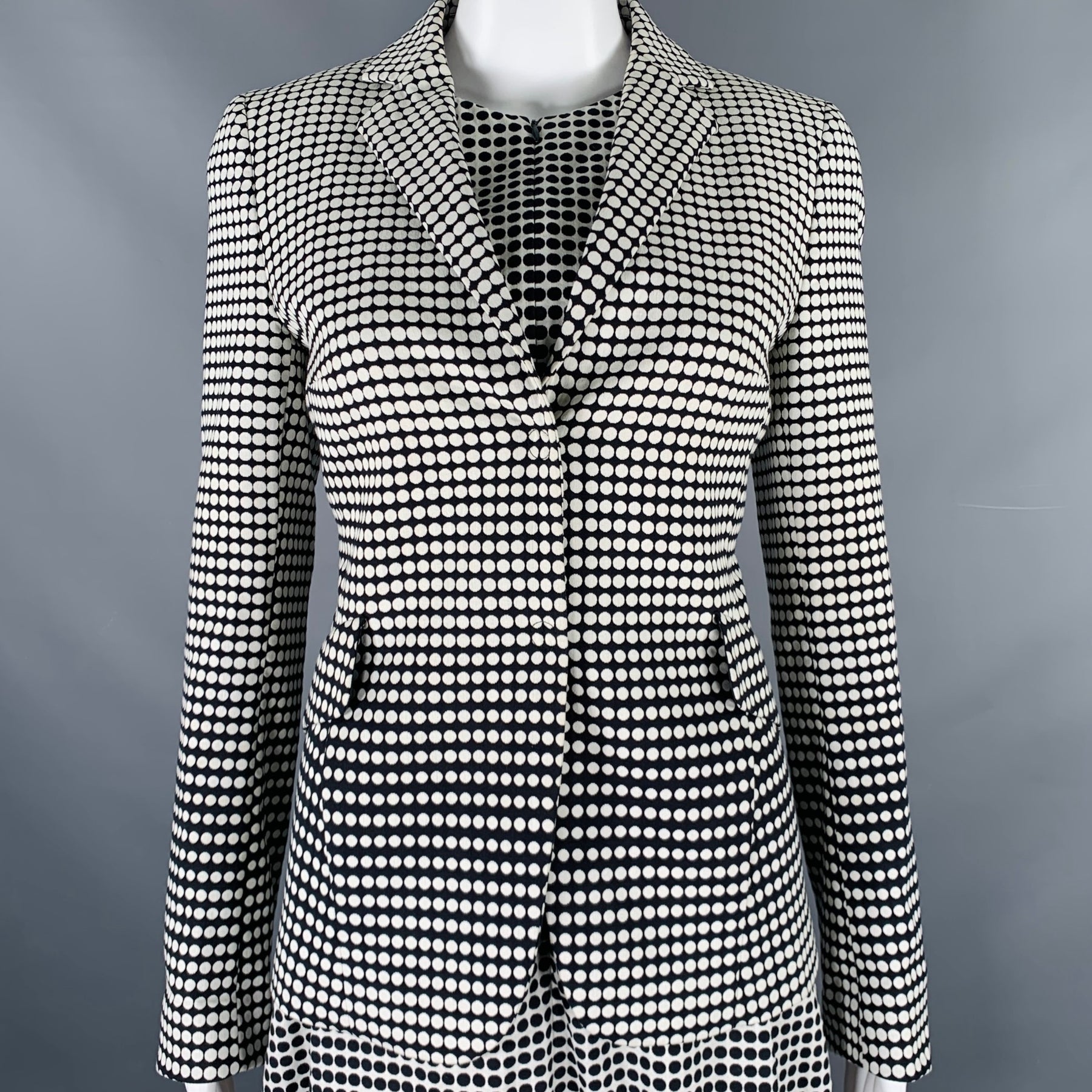 AKRIS Size 4 Black White Cotton Blend Polka Dot Notch Lapel Jacket Dress Set