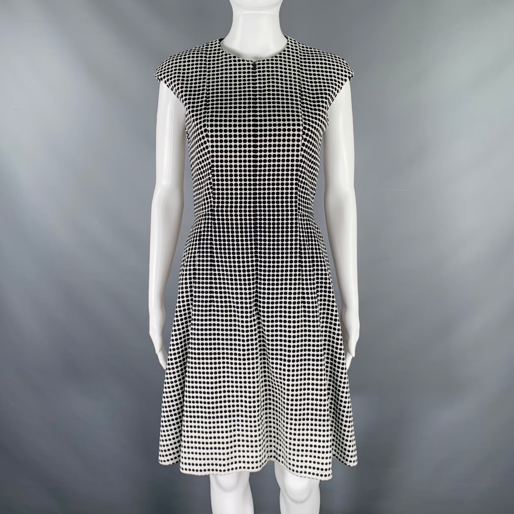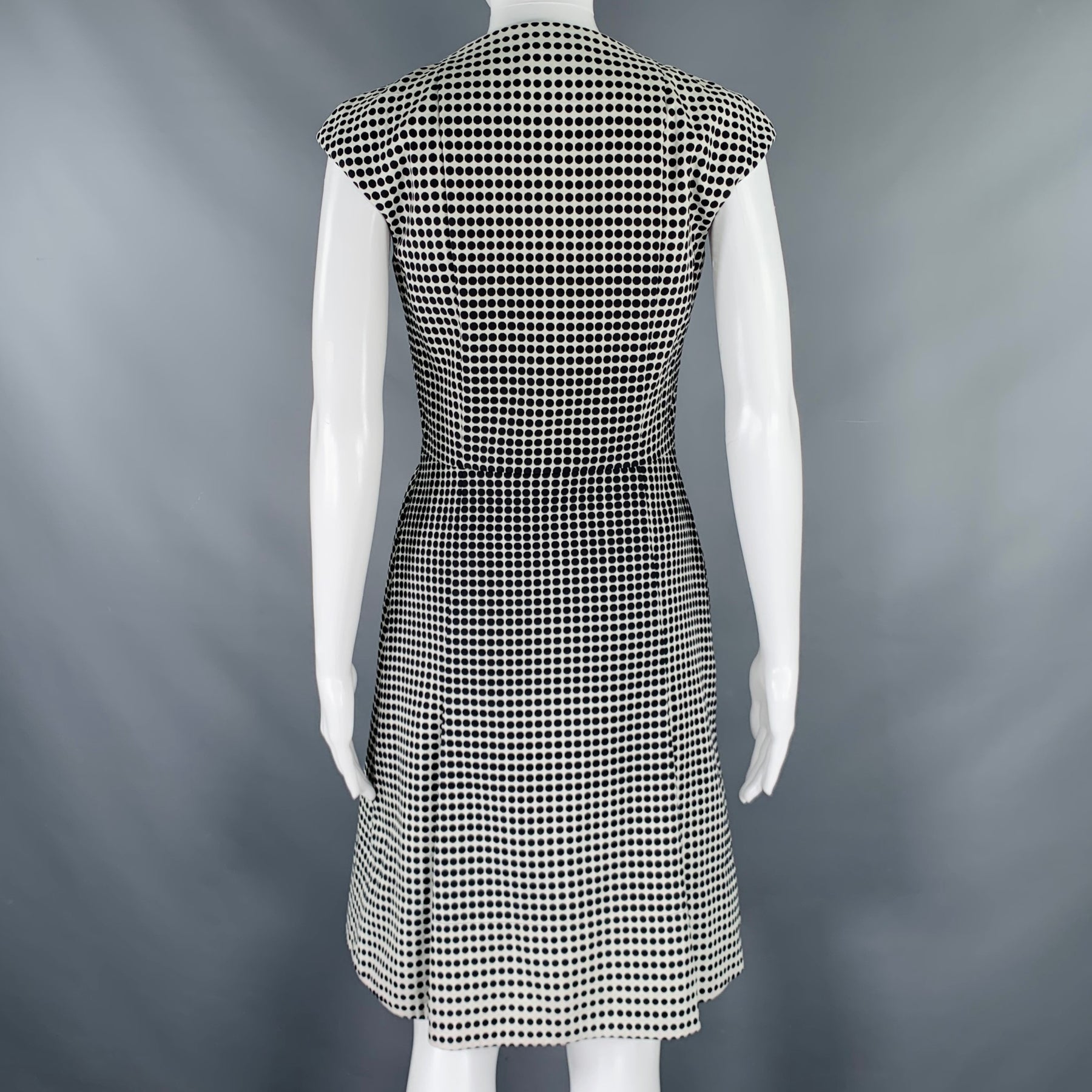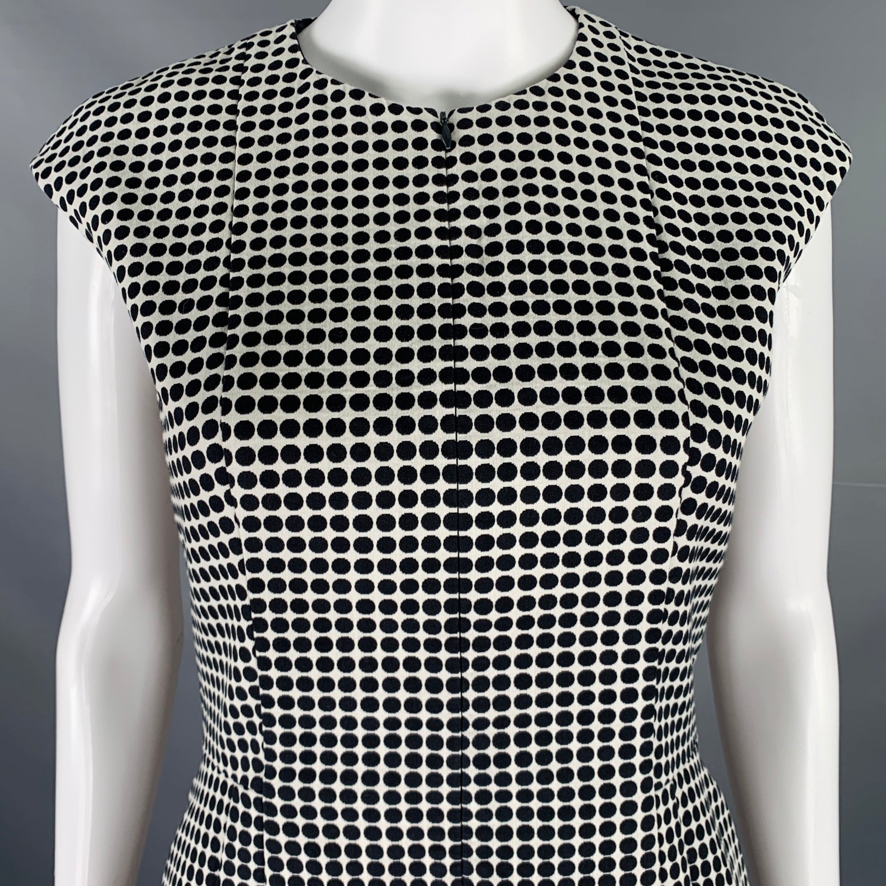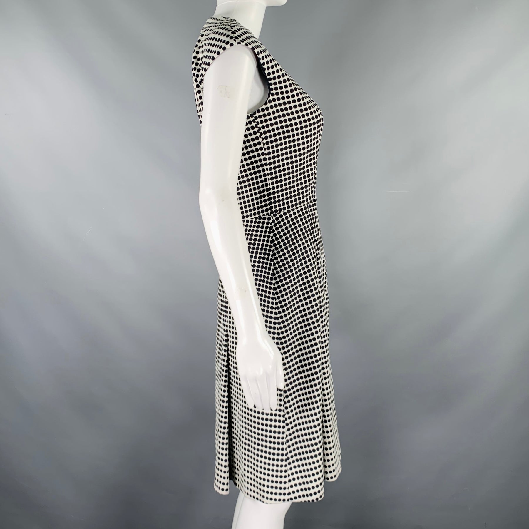 AKRIS Size 4 Black White Cotton Blend Polka Dot Notch Lapel Jacket Dress Set