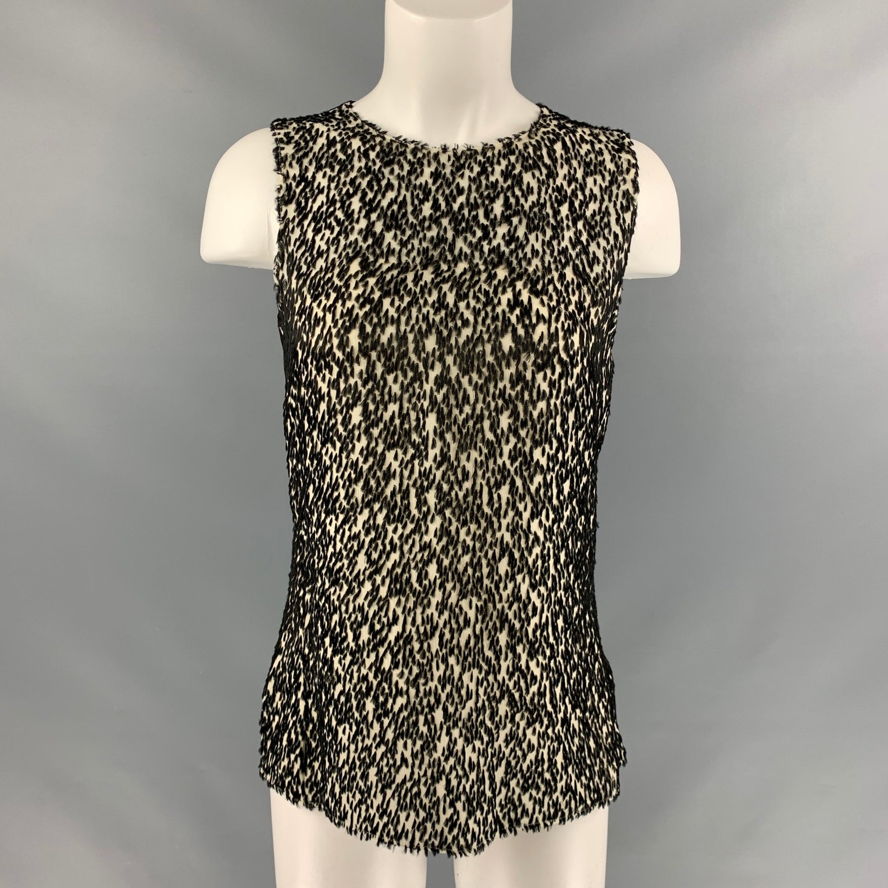 AKRIS Size 6 Black & White Viscose & Silk Blouse