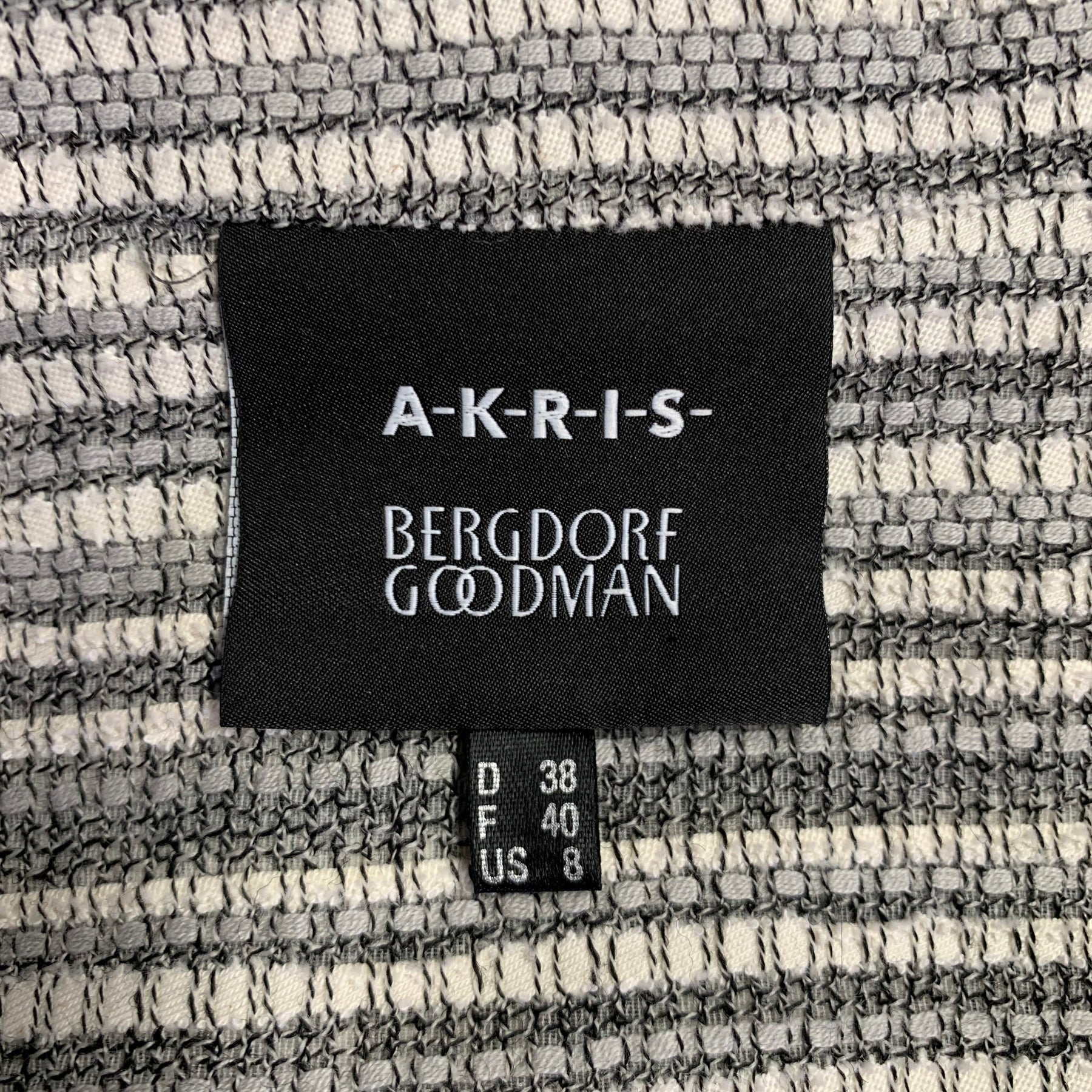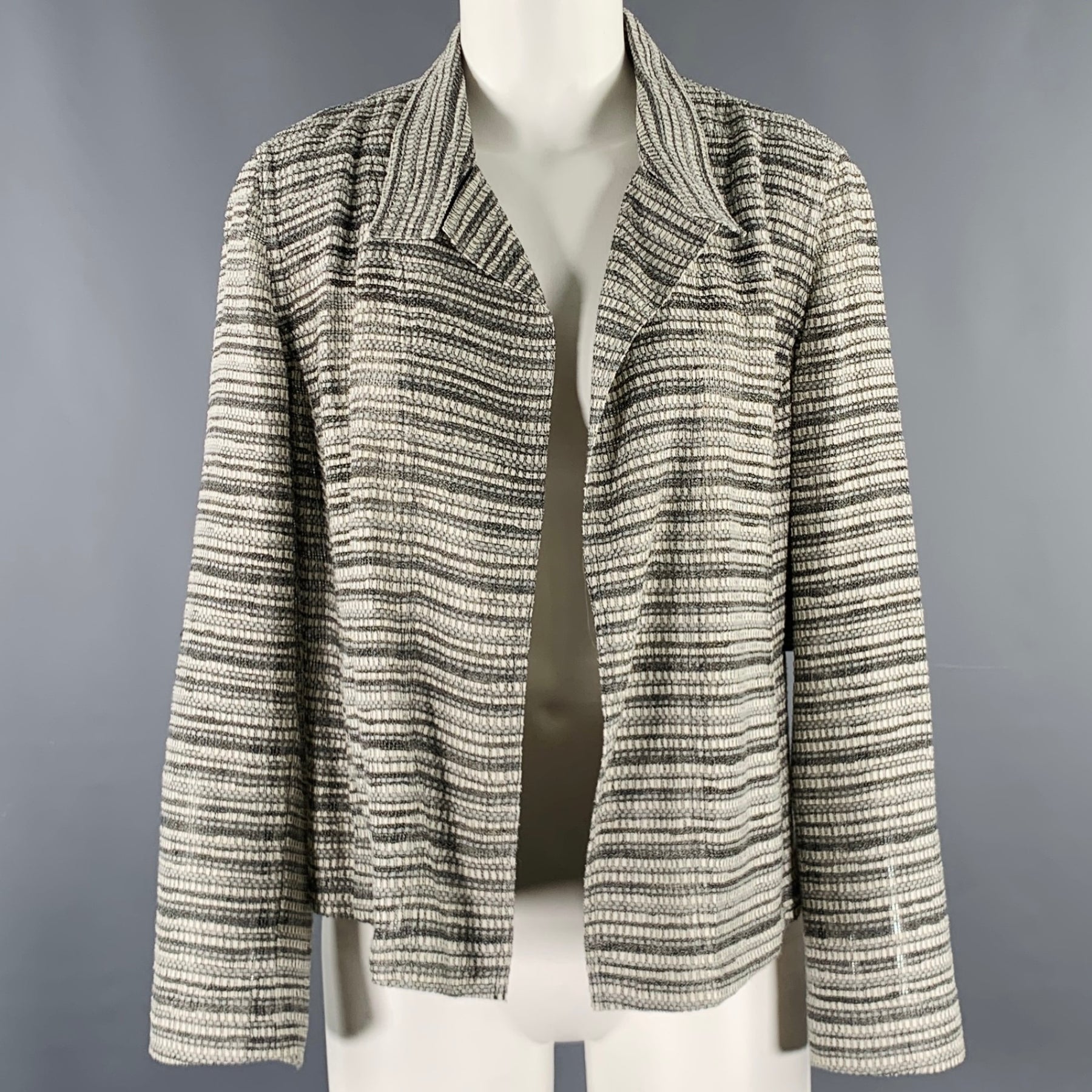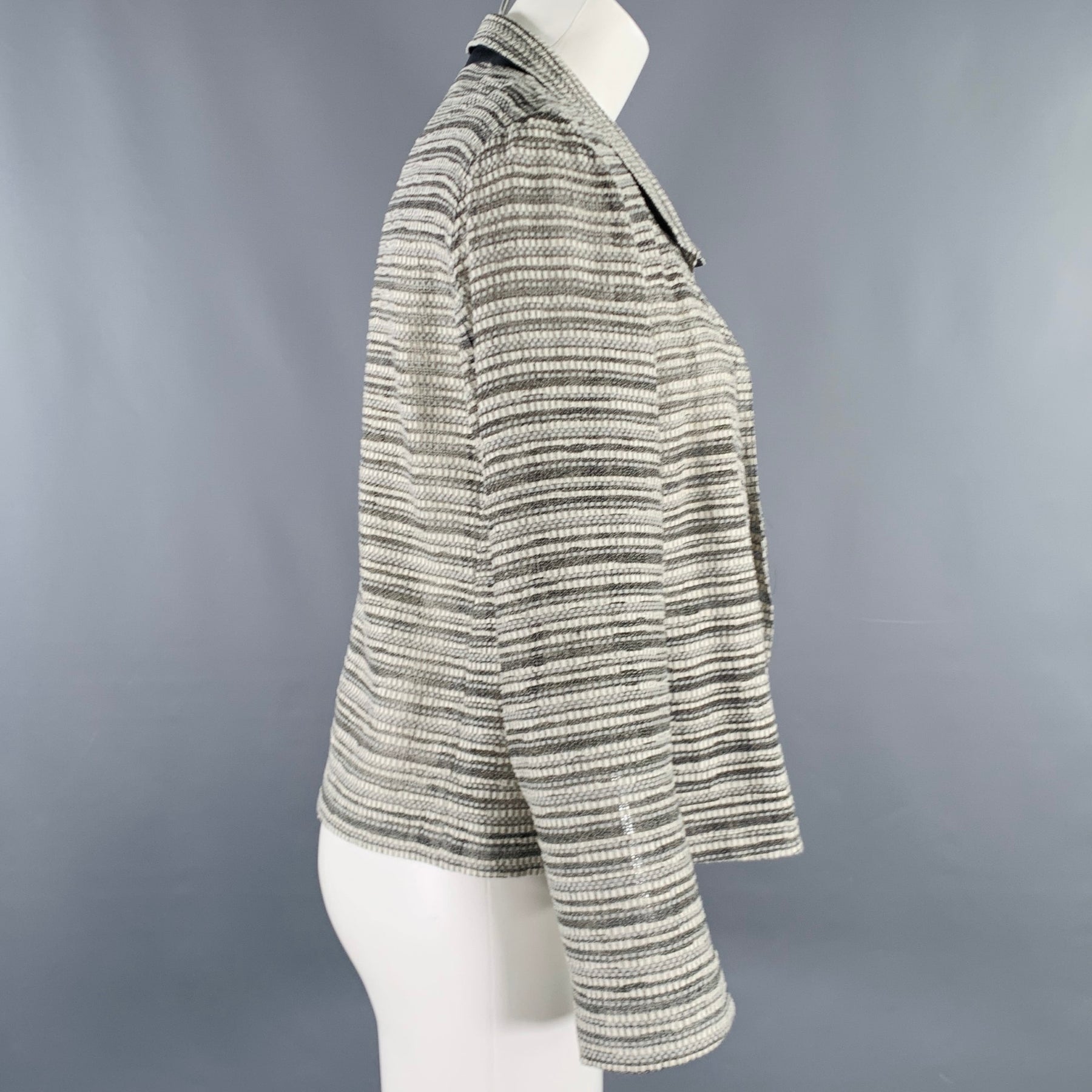AKRIS Size 8 Grey White Cotton Wool Stripe Open Front Jacket