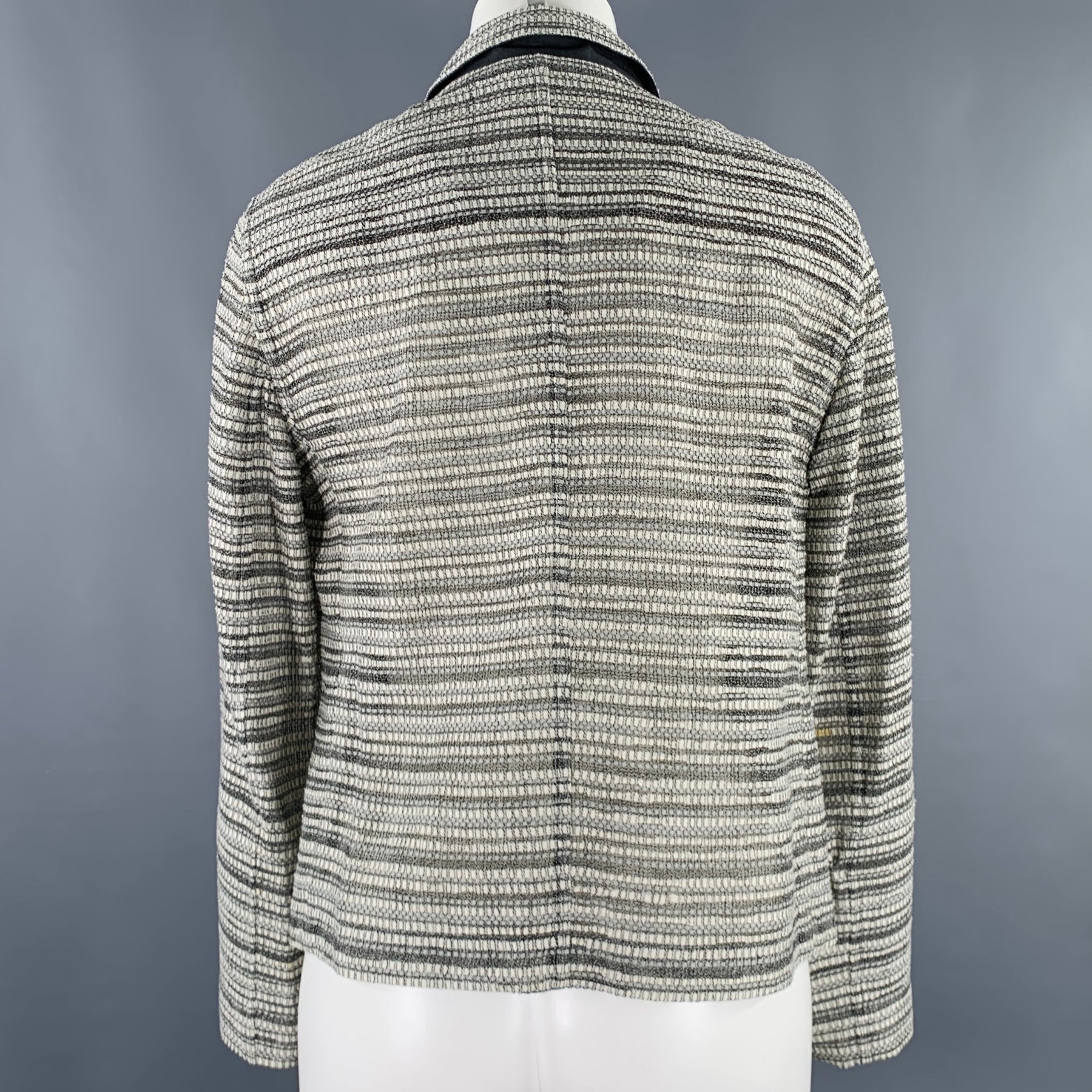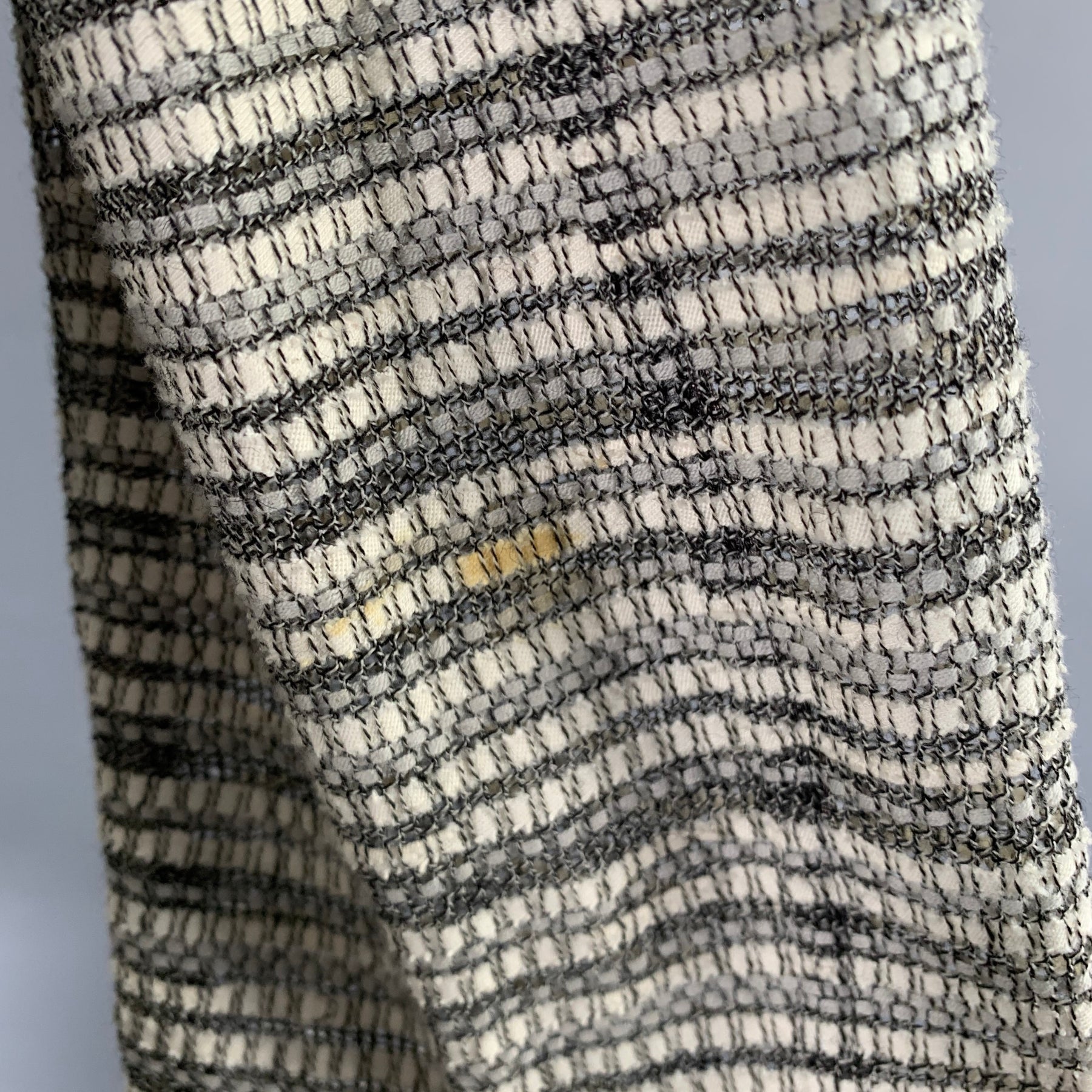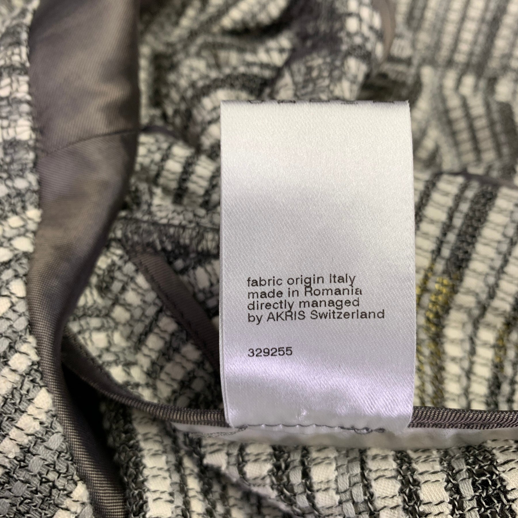 AKRIS Size 8 Grey White Cotton Wool Stripe Open Front Jacket