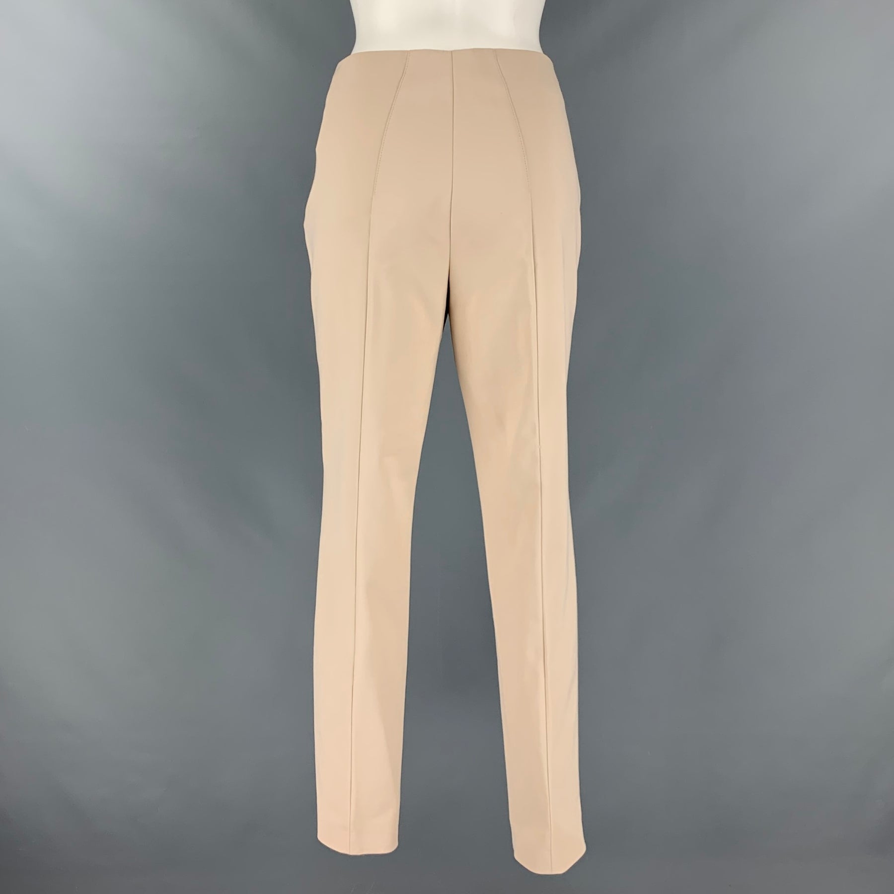 AKRIS dress pants comes in a pink cotton and elastane knit material featuring a cigaret style, medium waist, sized zip up closure.
