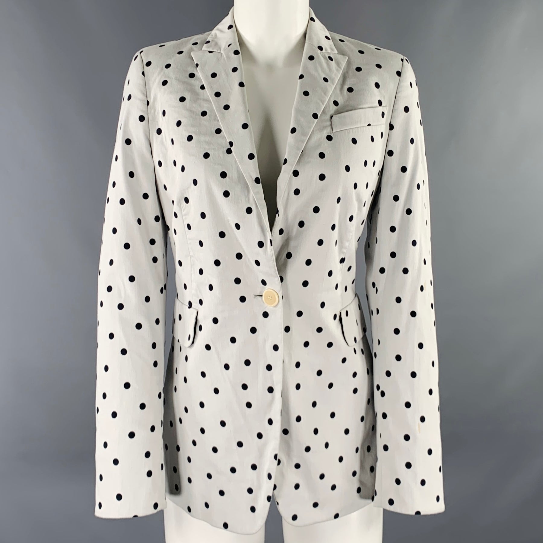 AKRIS Size 8 White Black Cotton Blend Polka Dot Blazer