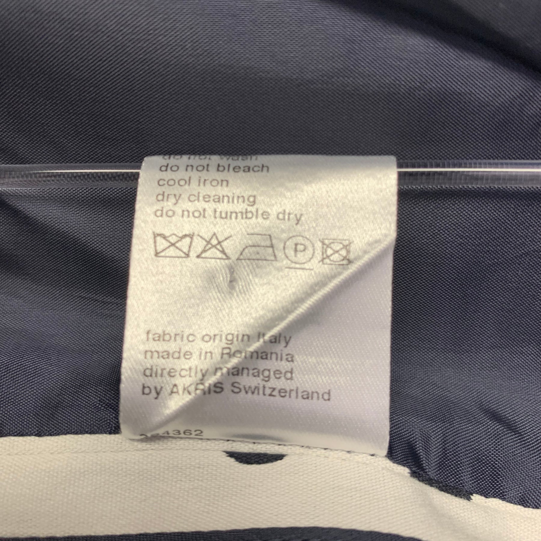 AKRIS blazer in a white and black cotton blend fabric featuring a polka dot pattern, peak lapel, and single button closure. Made in Romania.