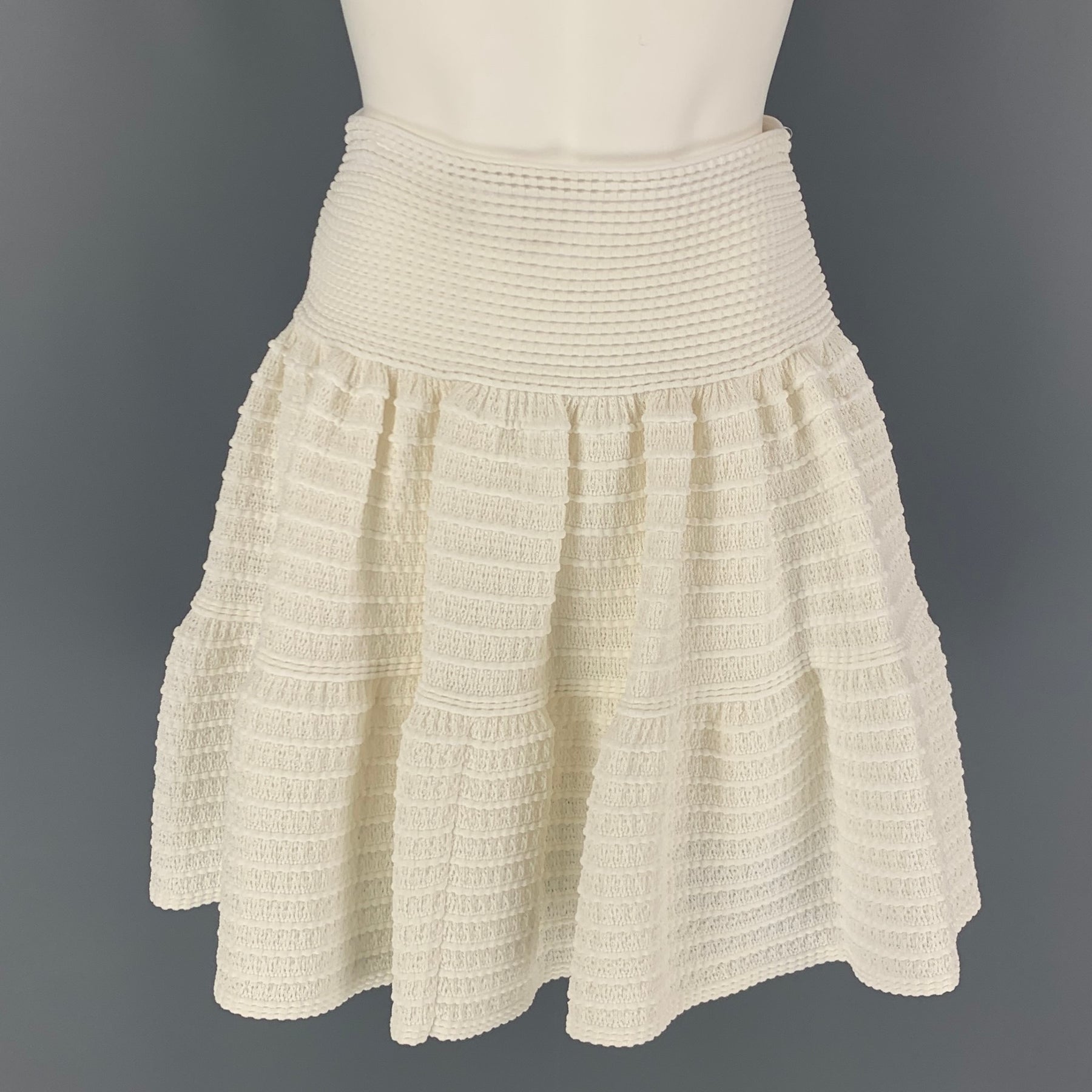 ALAIA Size 4 White Cotton Blend Textured Circle Knee-Length Skirt