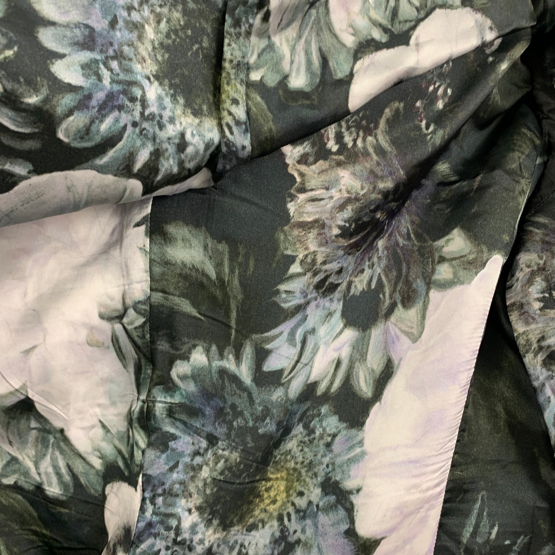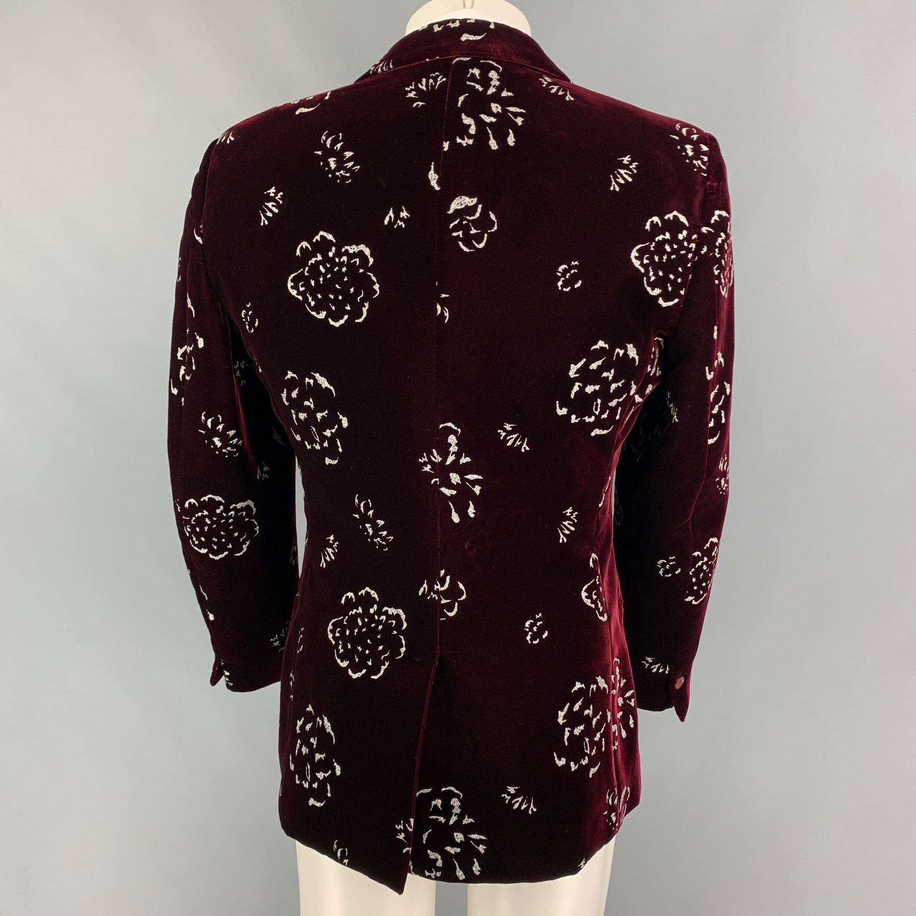 ALEXANDER McQUEEN FW 16 sport coat comes in a burgundy & silver print viscose with a full floral print liner featuring a notch lapel, slit pockets, single back vent, and a single button closure. Made in Italy.
