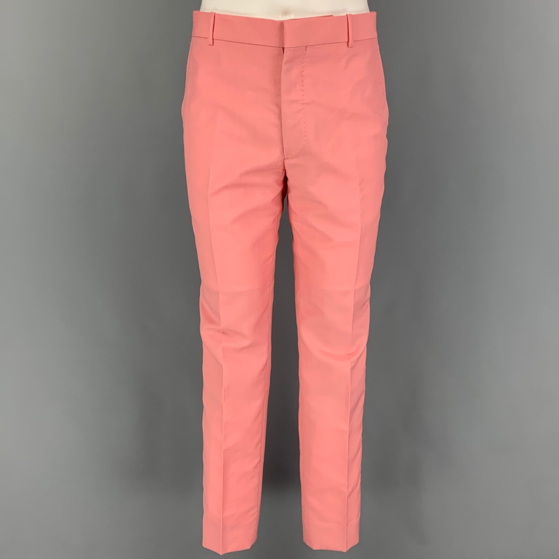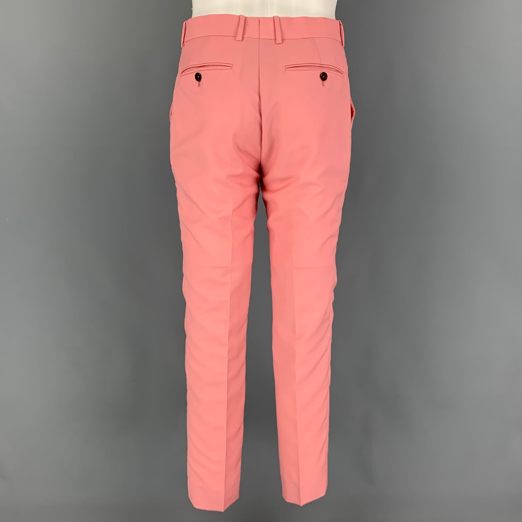 ALEXANDER McQUEEN suit comes in a pink wool / mohair with a full liner and includes a single breasted,  double button sport coat with a notch lapel and matching flat front trousers. Made in Italy.