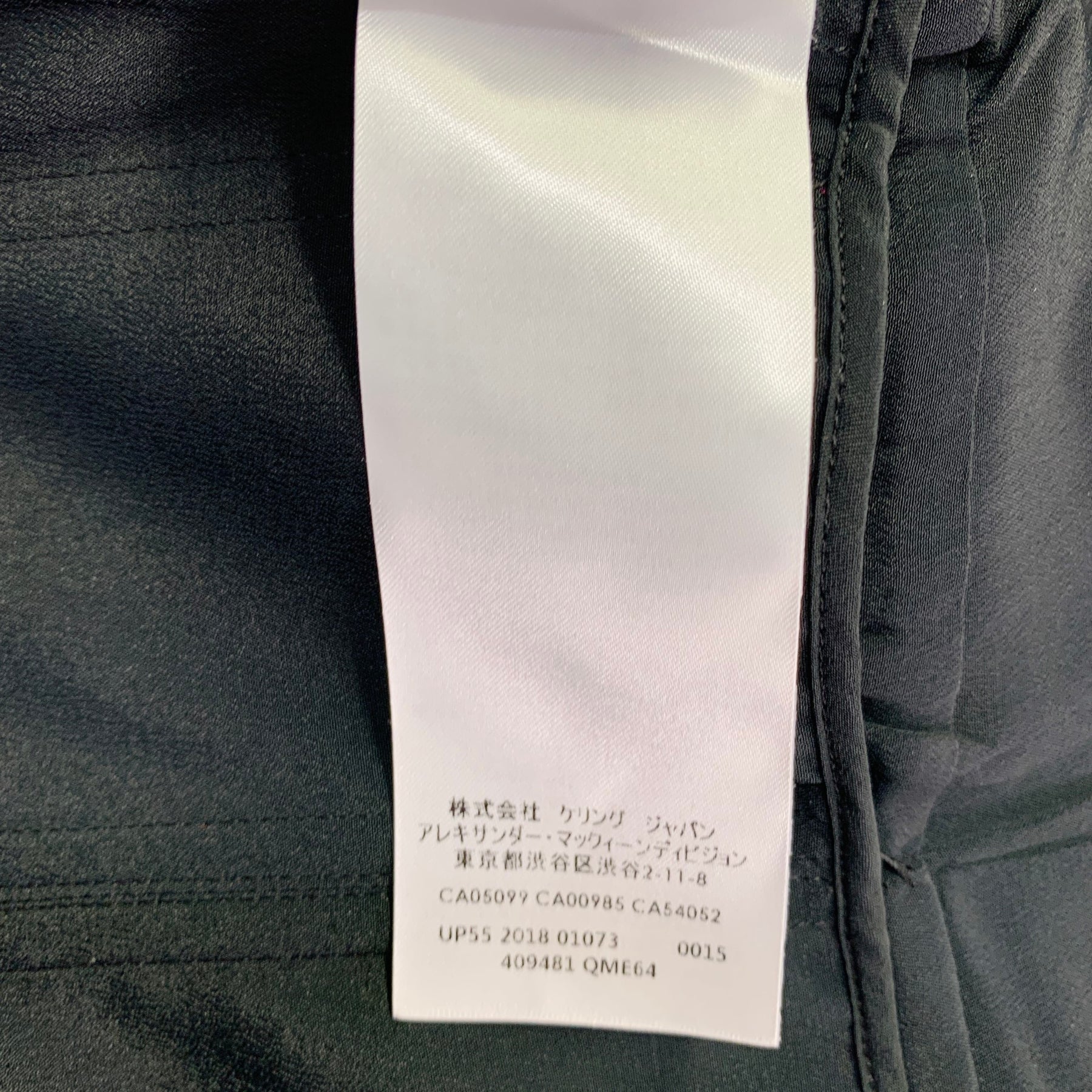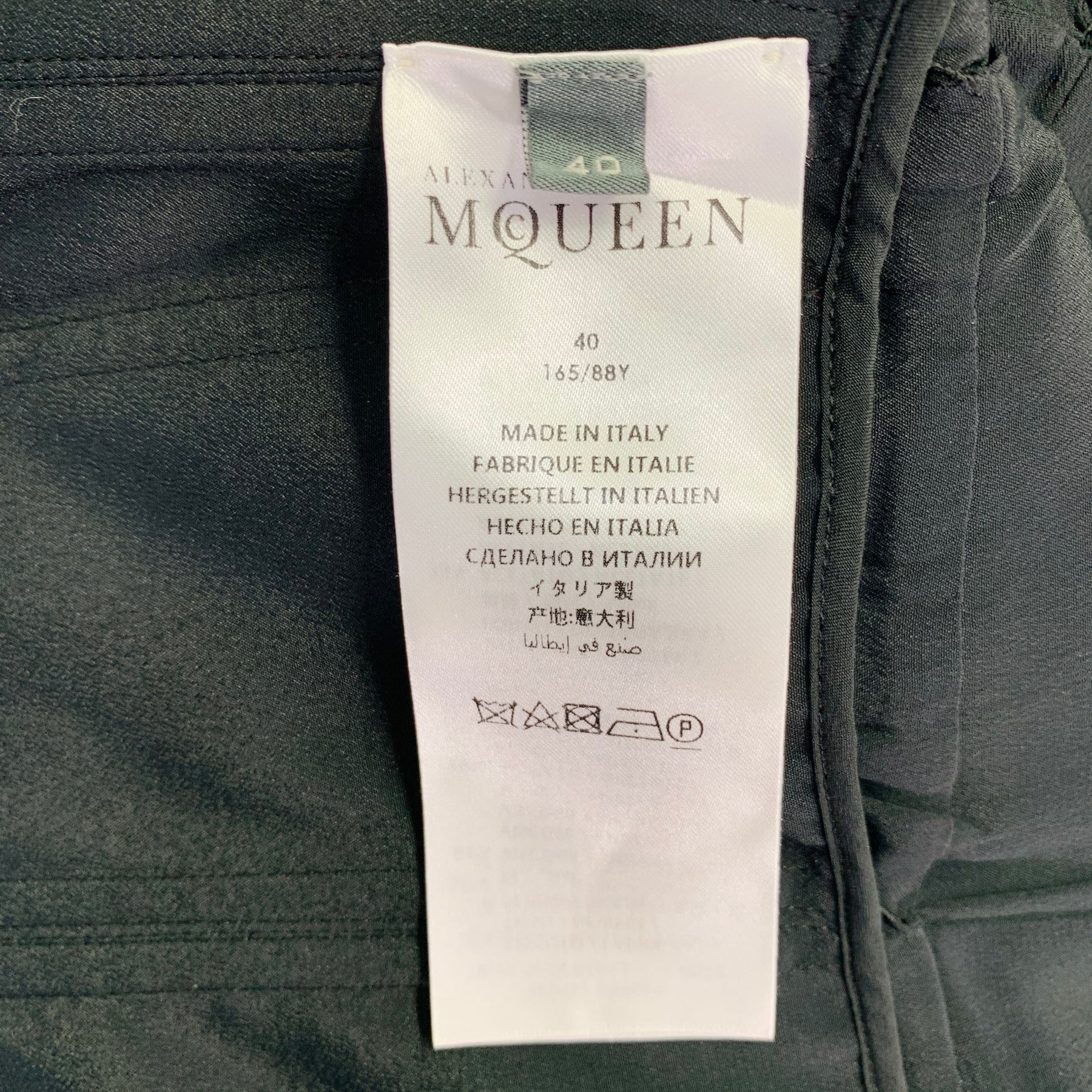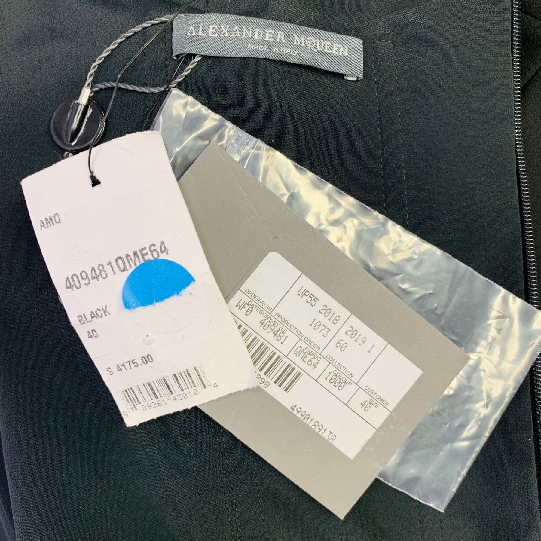 ALEXANDER MCQUEEN evening gown in a black viscose blend featuring a form fitting skirt with ruffle detail, off shoulder design, and built in bustier. Made in Italy.