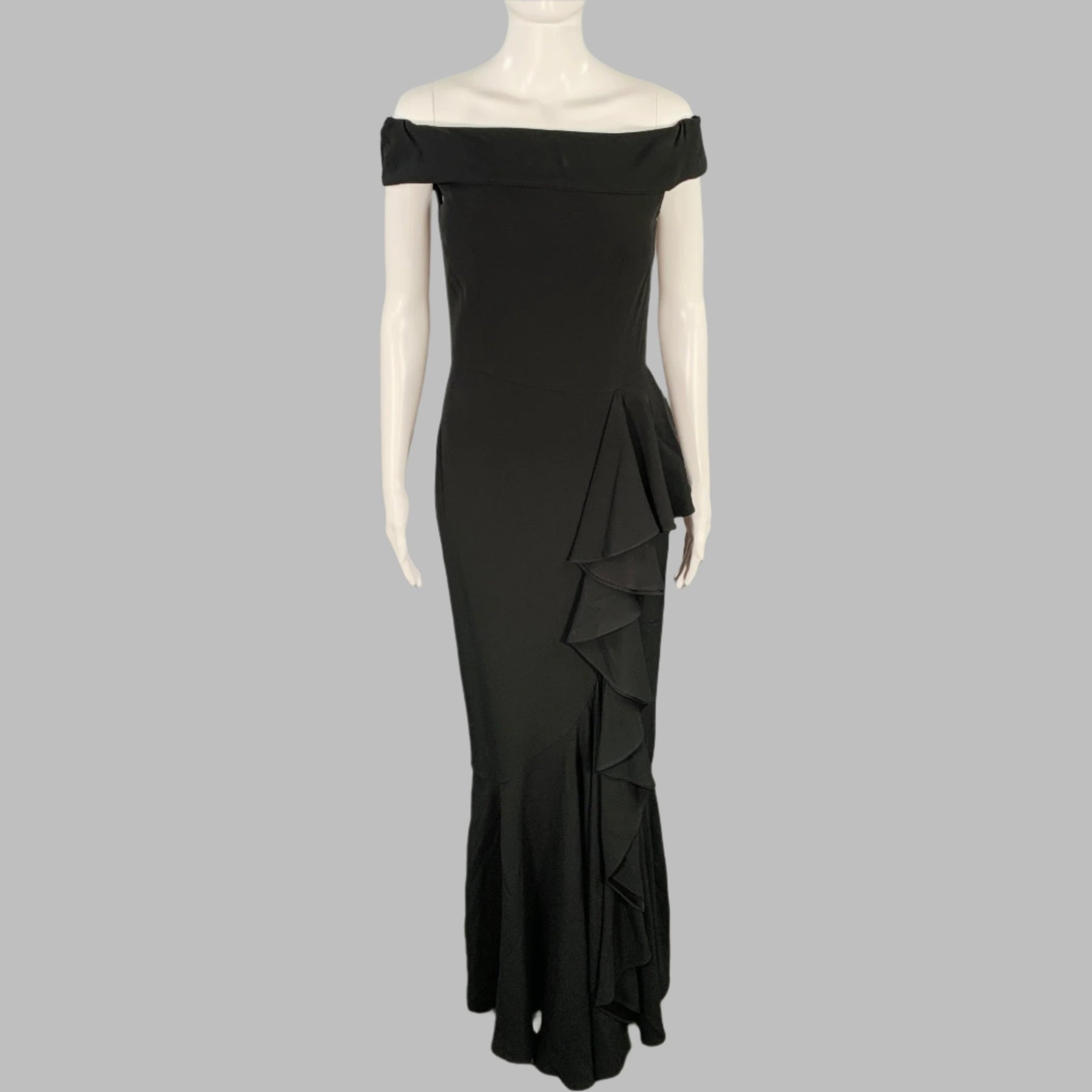 ALEXANDER MCQUEEN Size 4 Black Viscose Blend Ruffled Off Shoulder Evening Gown