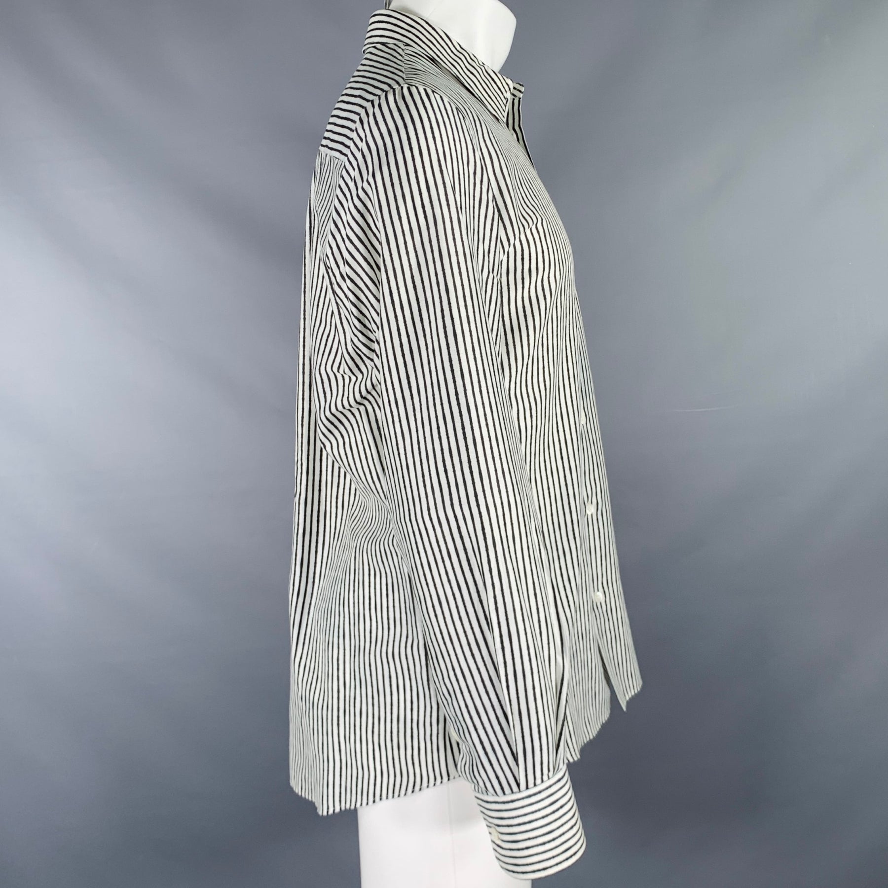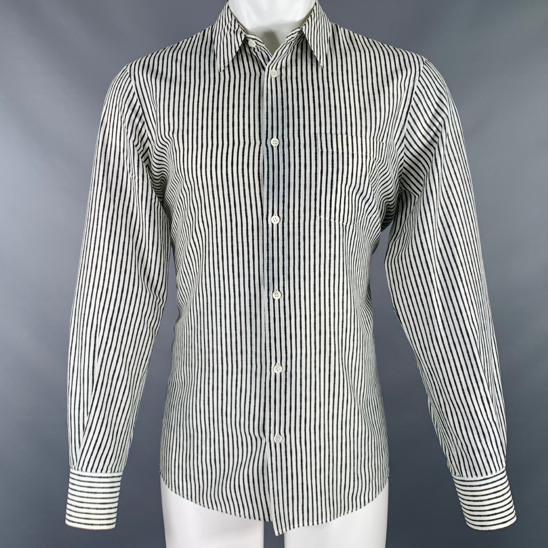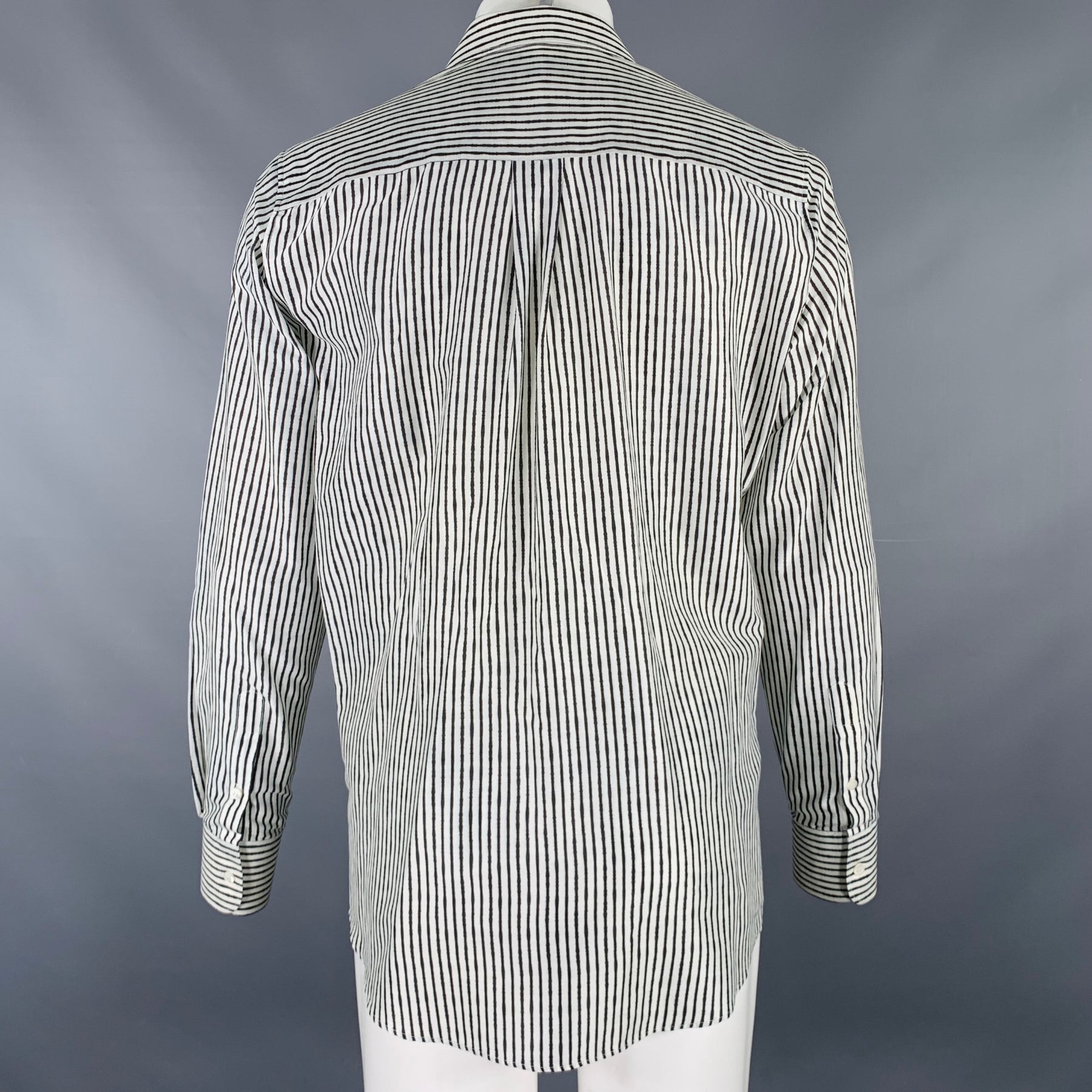 ALEXANDER MCQUEEN Size M White Black Stripe Cotton Silk Long Sleeve Shirt