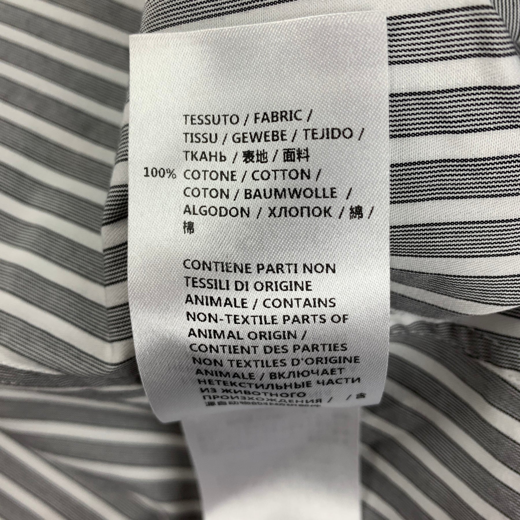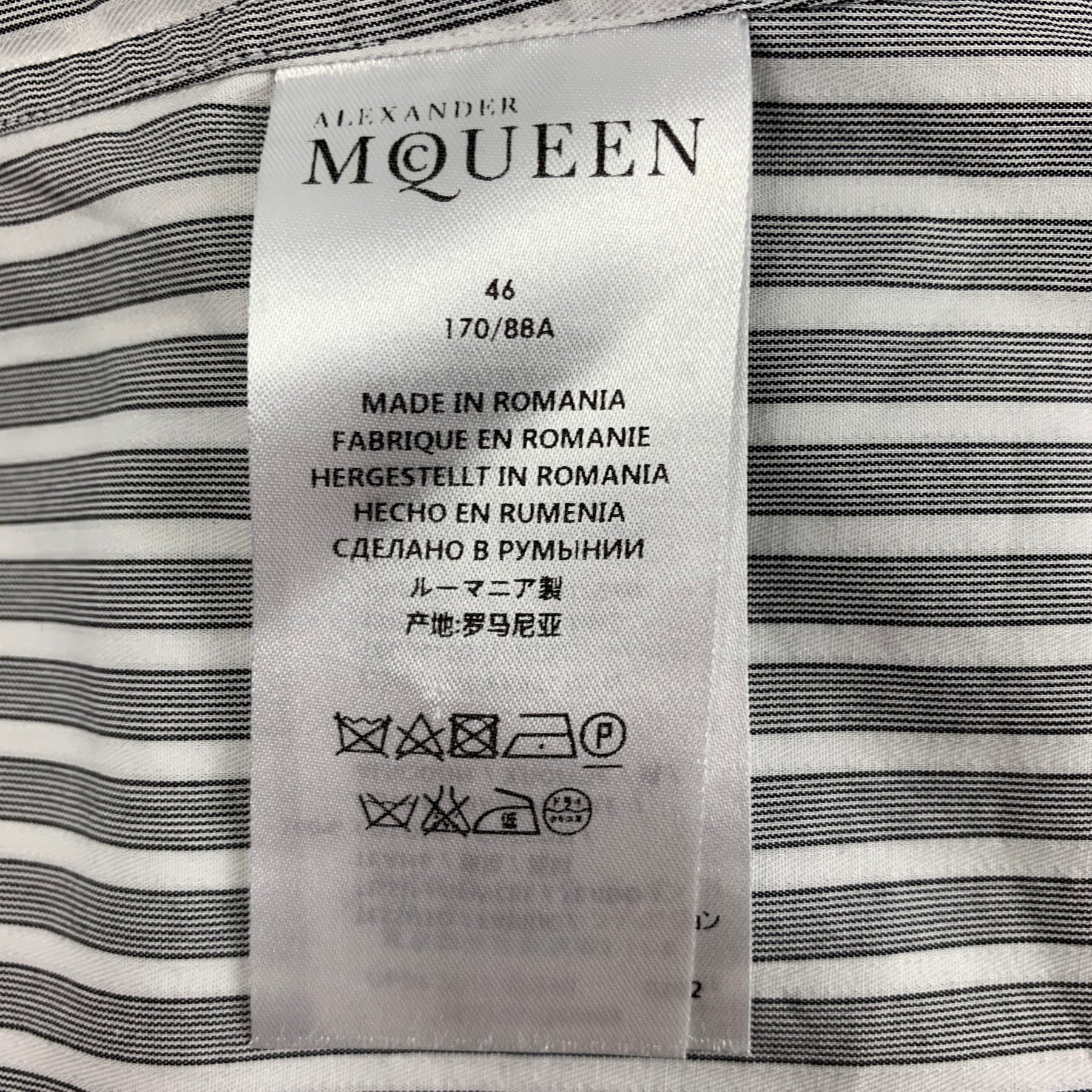 ALEXANDER McQUEEN short sleeve shirt comes in a grey & white stripe cotton featuring a button down collar, buttoned sleeves, and a button up closure. Made in Romania