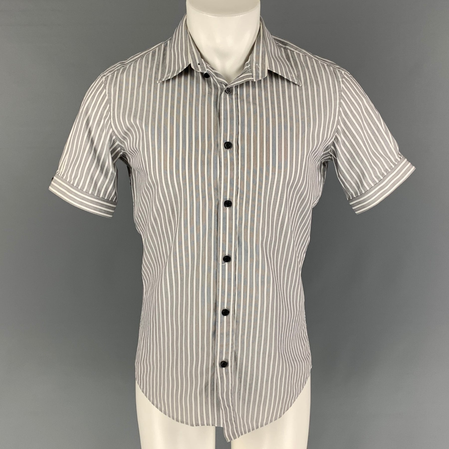 ALEXANDER MCQUEEN Size XS Grey White Stripe Cotton Button Up Short Sleeve Shirt