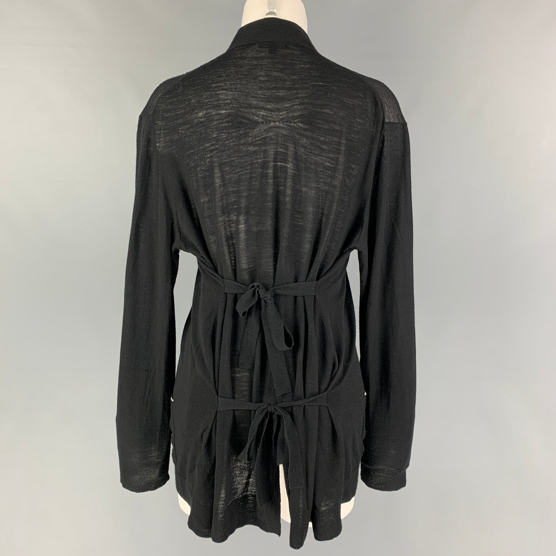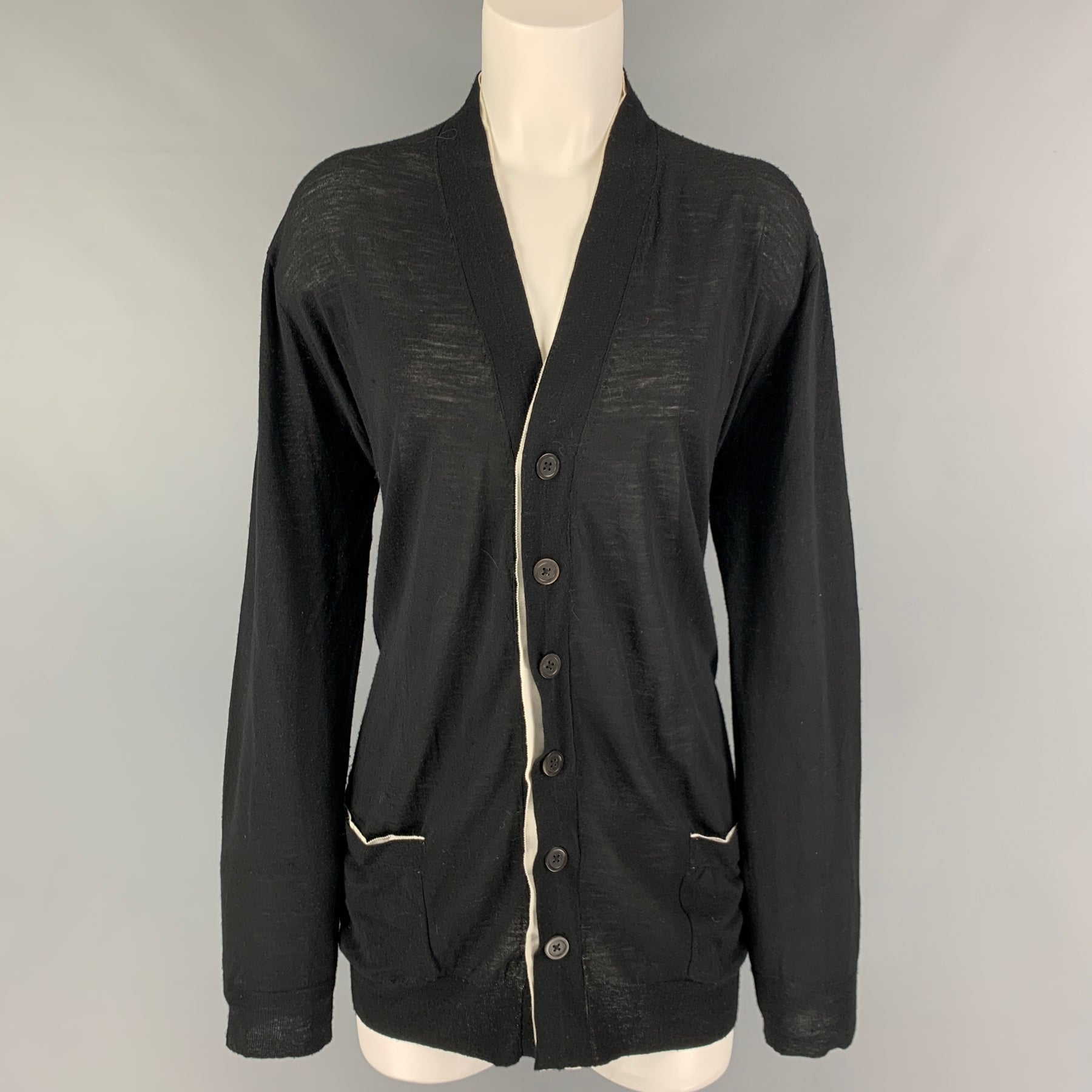 ANN DEMEULEMEESTER Size 8 Black White Wool Contrast Stitch Cardigan