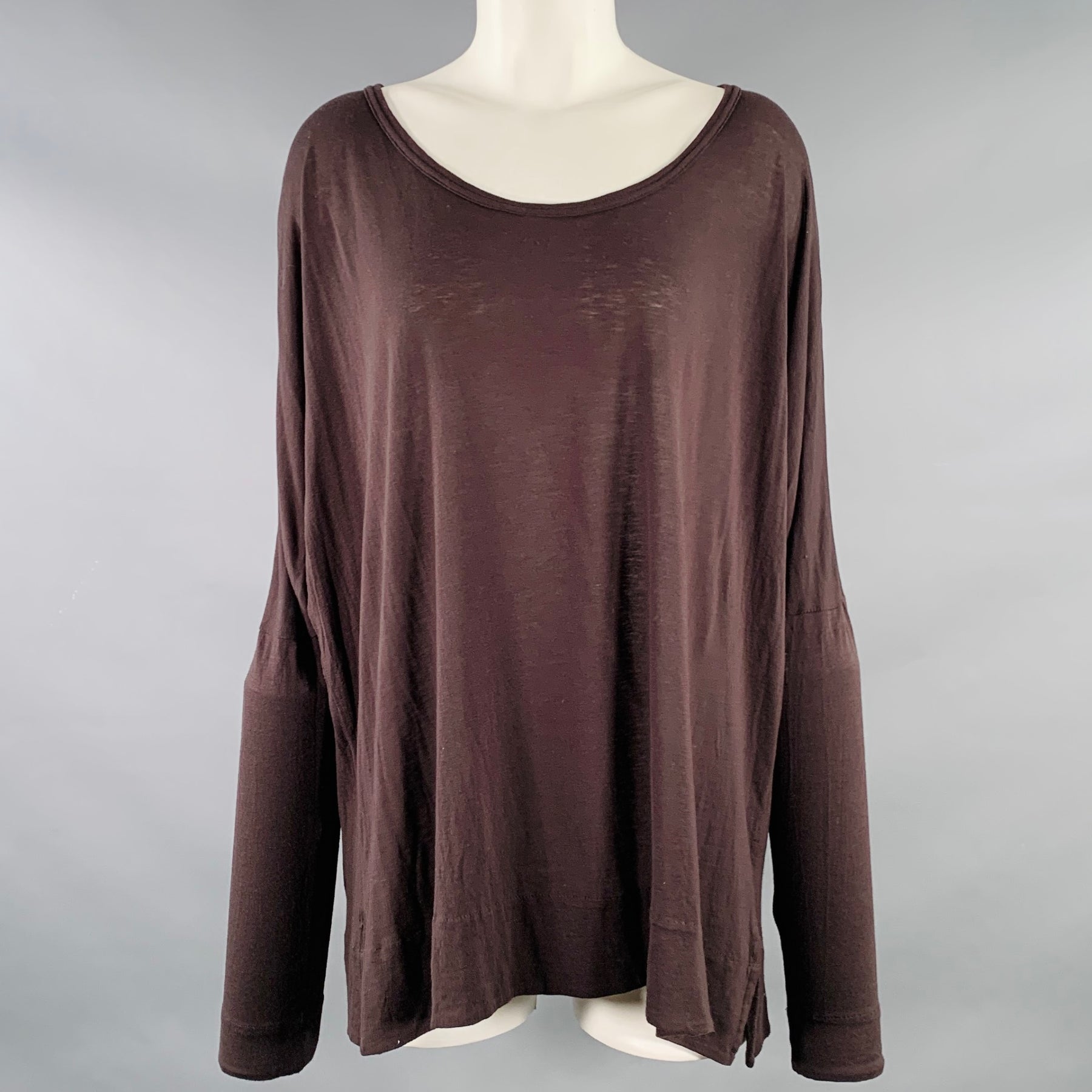 ANN DEMEULEMEESTER Size M Brown Jersey Scoop Neck Casual Top