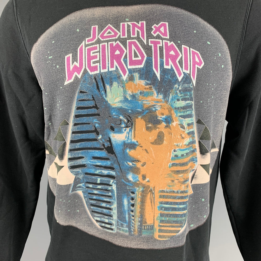 NICOLAS GHESQUIERE x BALENCIAGA FW 2013-2014 sweatshirt in a black cotton fabric featuring Egyptian themed graphic and crew neck. Made in Portugal.