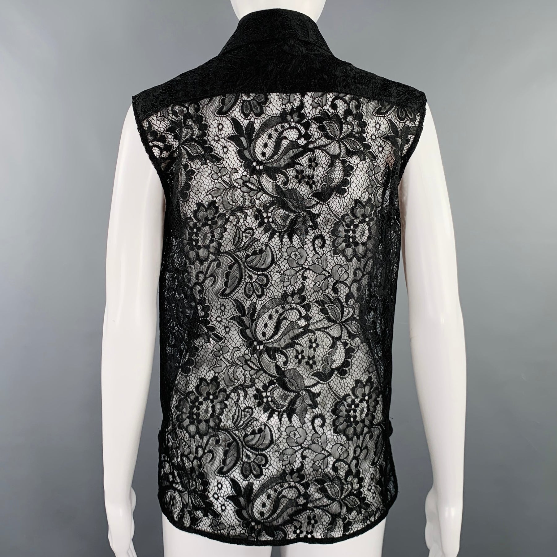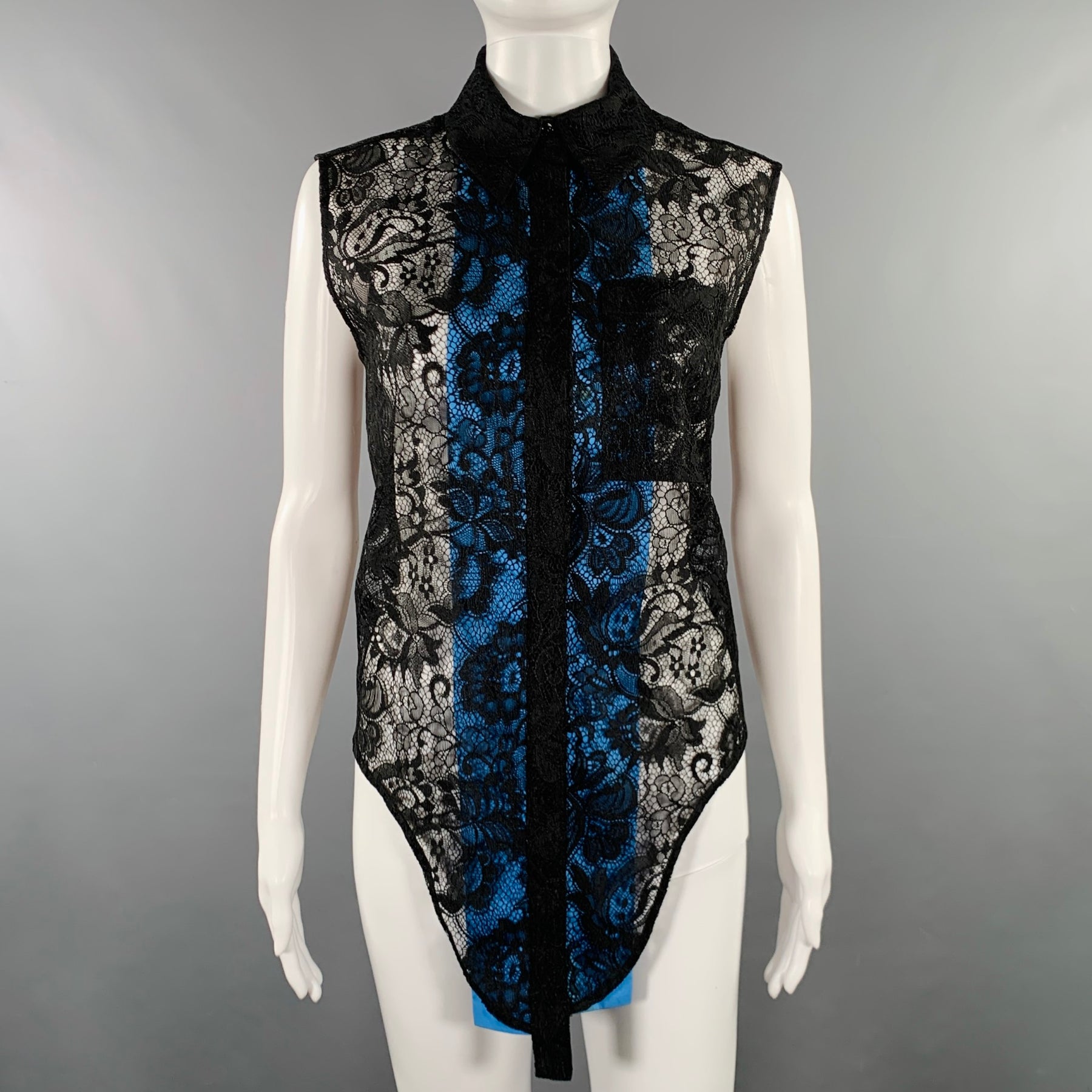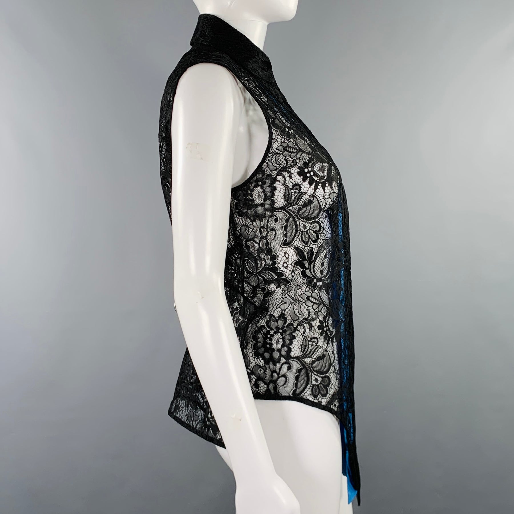 BALENCIAGA Size S Black Blue Polyester Blend Lace Sleeveless Shirt