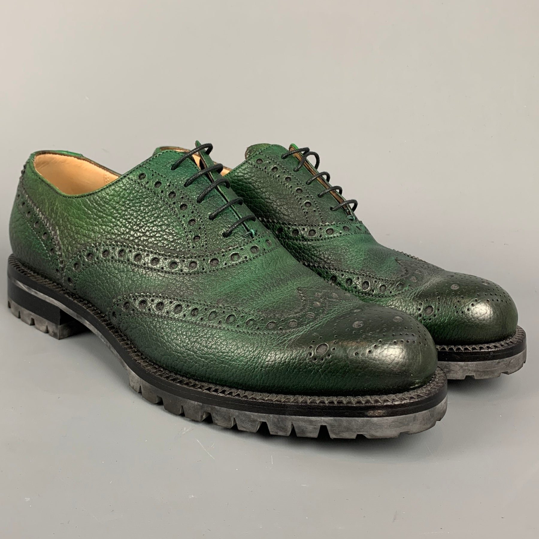 BALLY Bindy Size 10 Green Perforated Leather Wingtip Lace Up Shoes