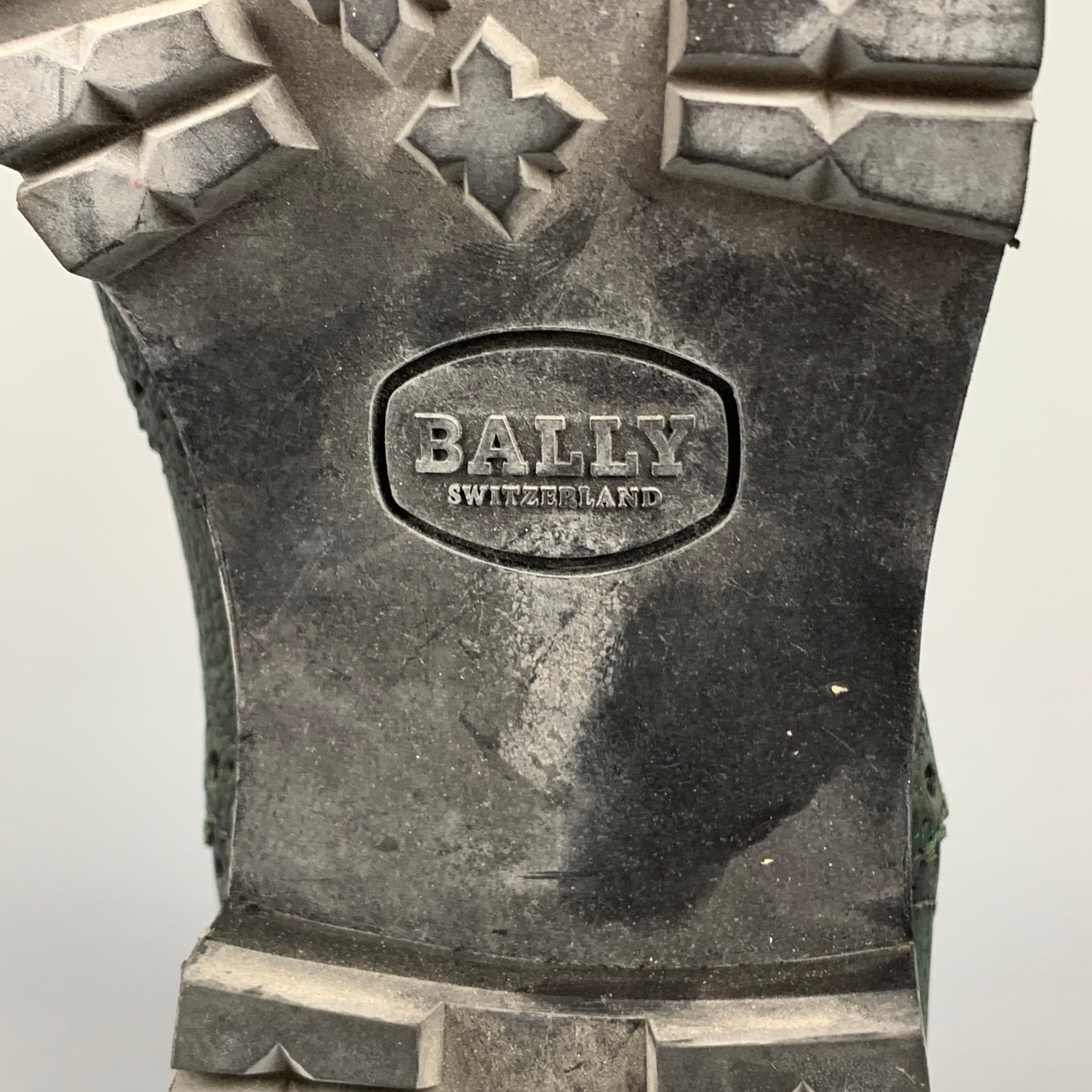 BALLY shoes comes in a green perforated leather featuring a wingtip, lace up, and a track sole. Made in Italy.