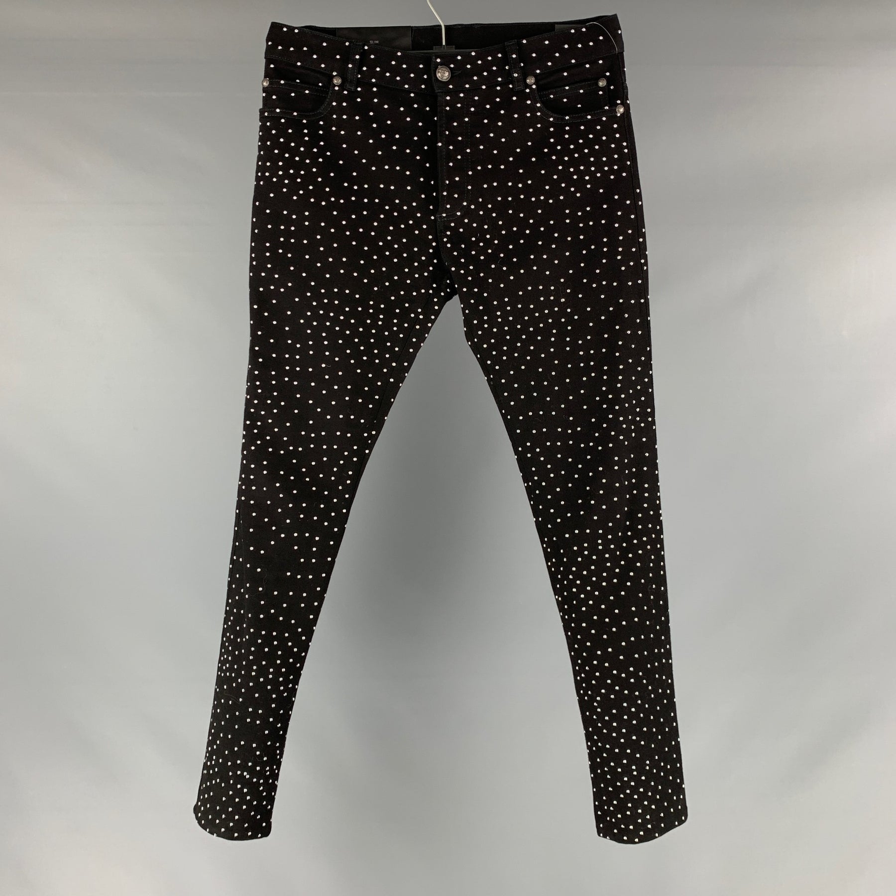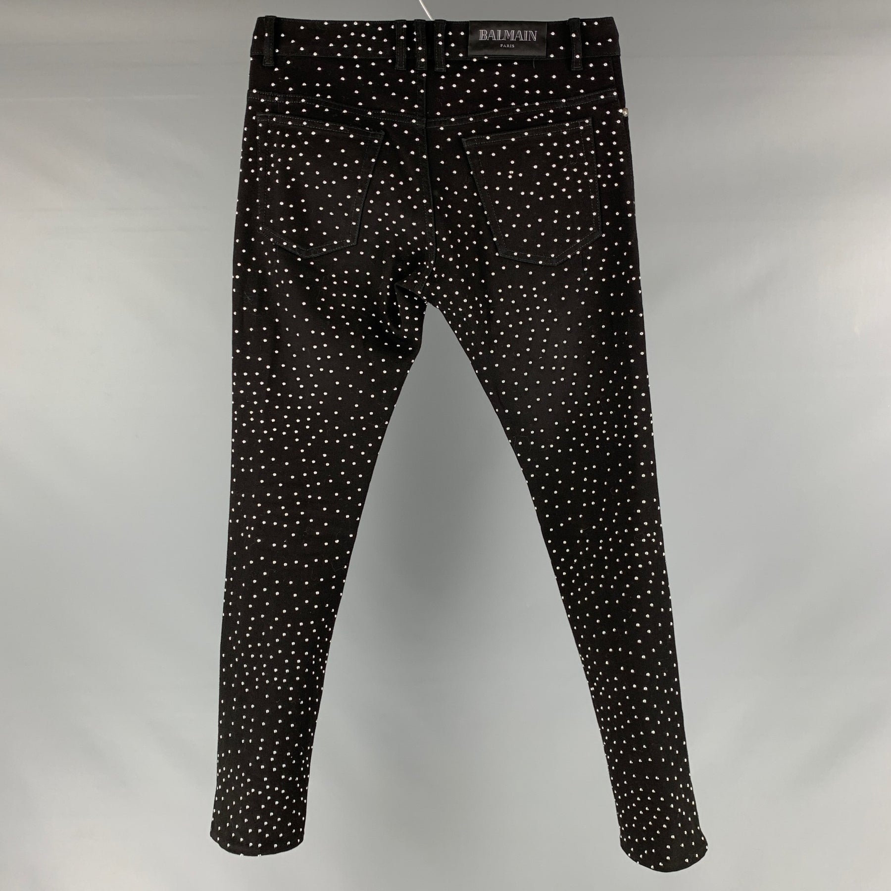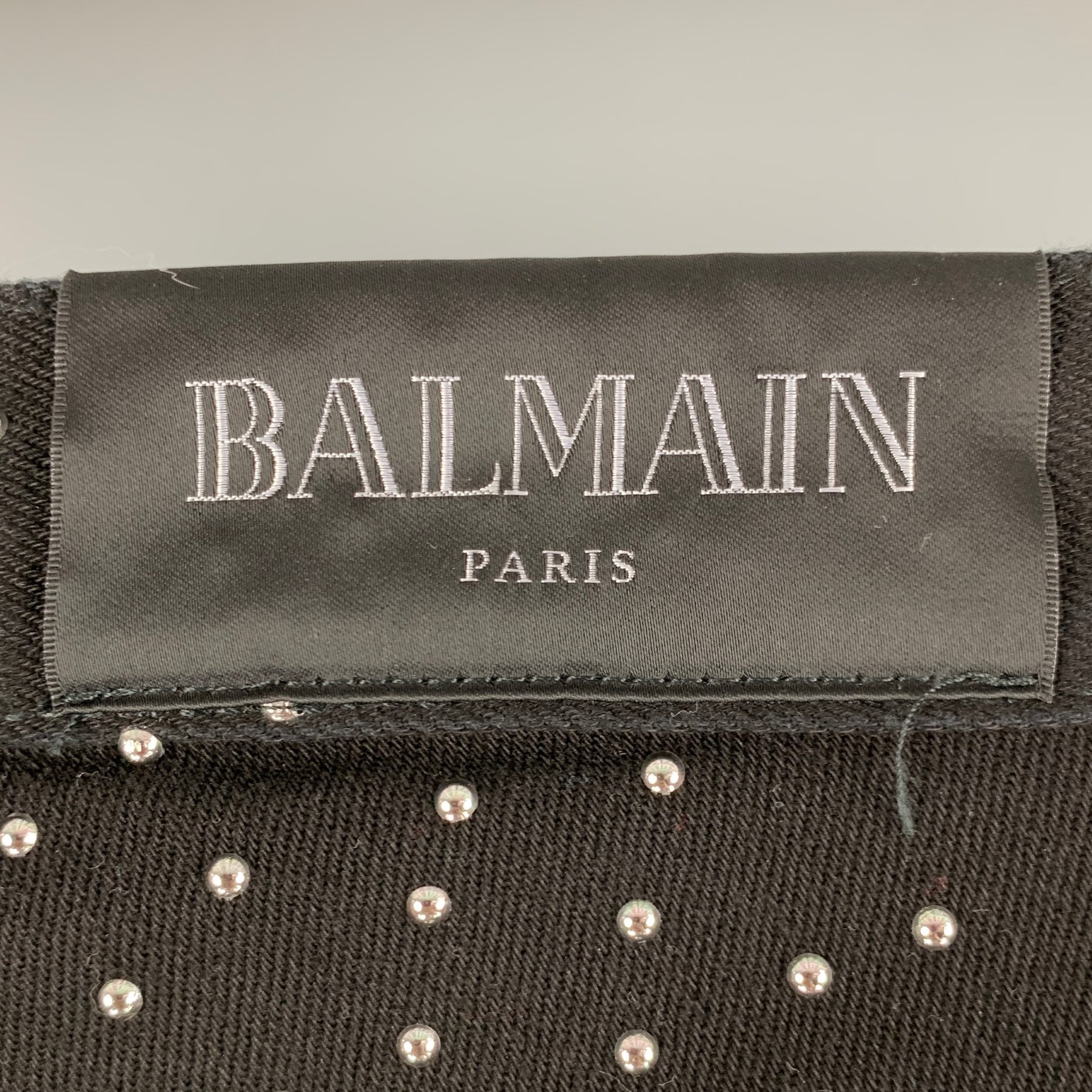 BALMAIN Size 30 Black Studded Cotton Elastane Button Fly Jeans