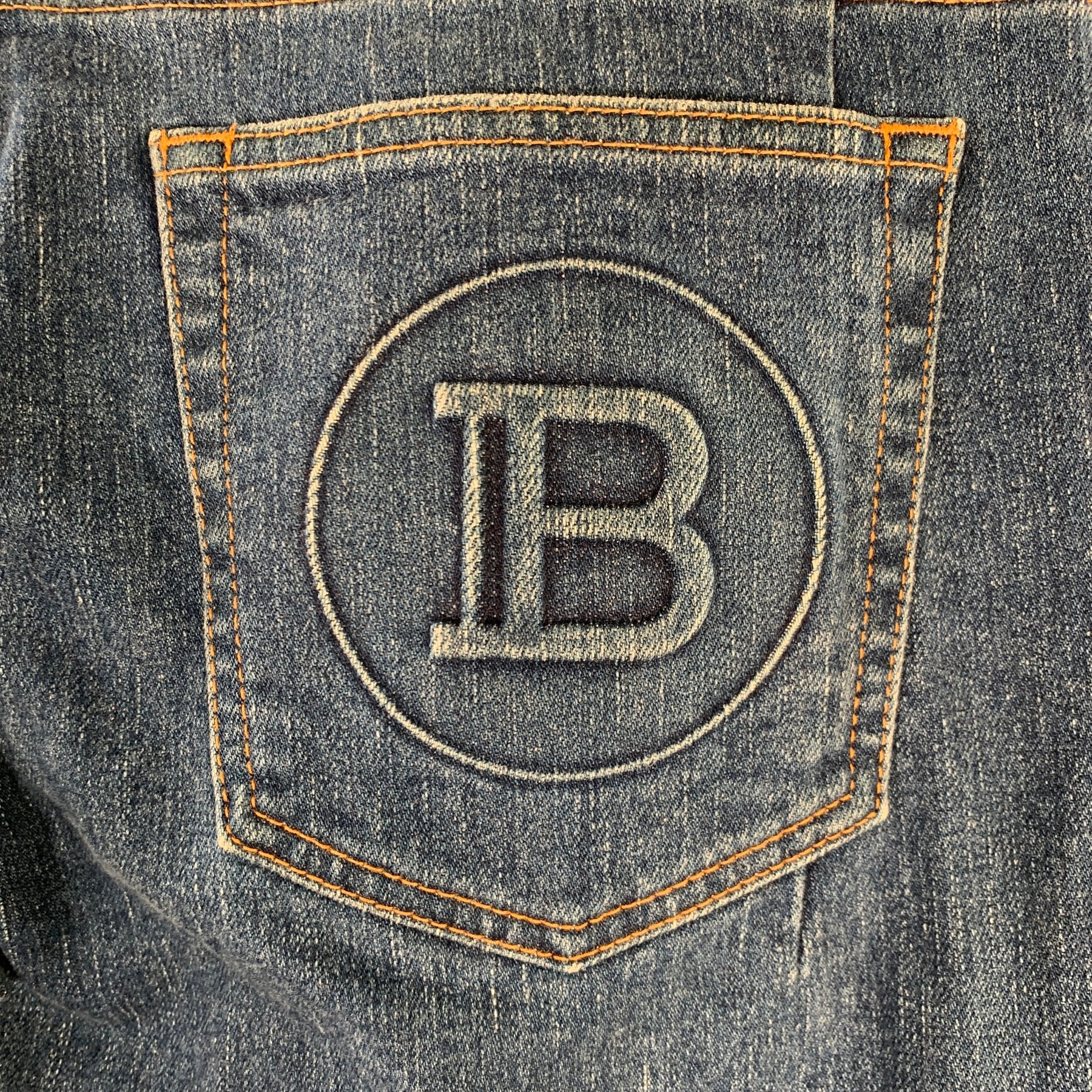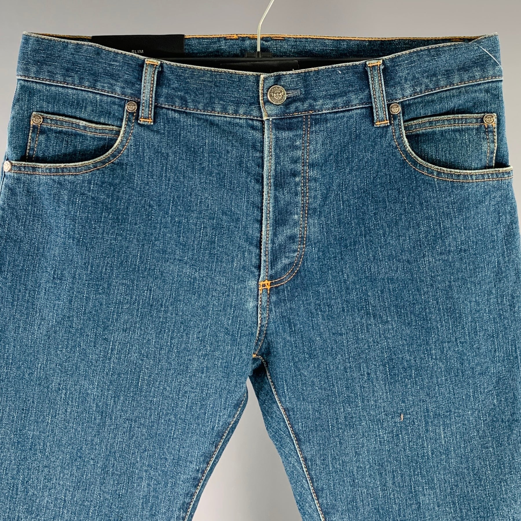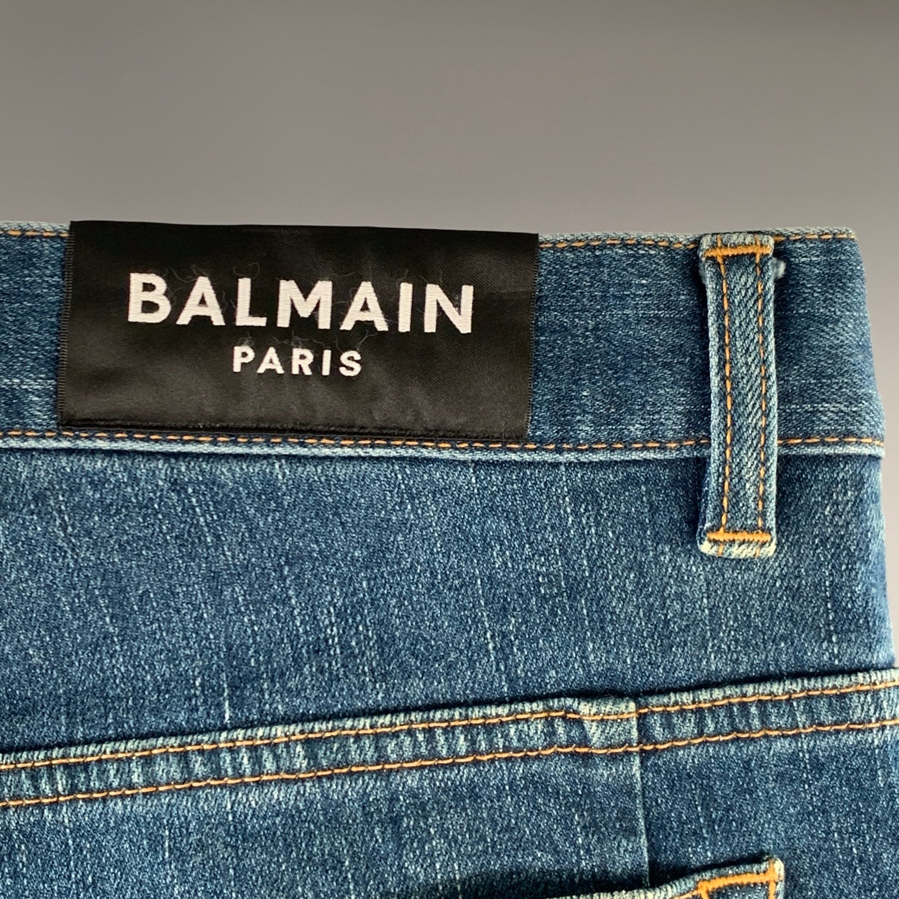 BALMAIN Size 32 Blue Contrast Stitch Cotton Blend Skinny Button Fly Jeans