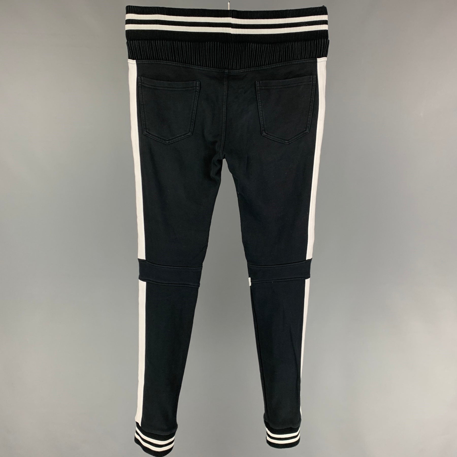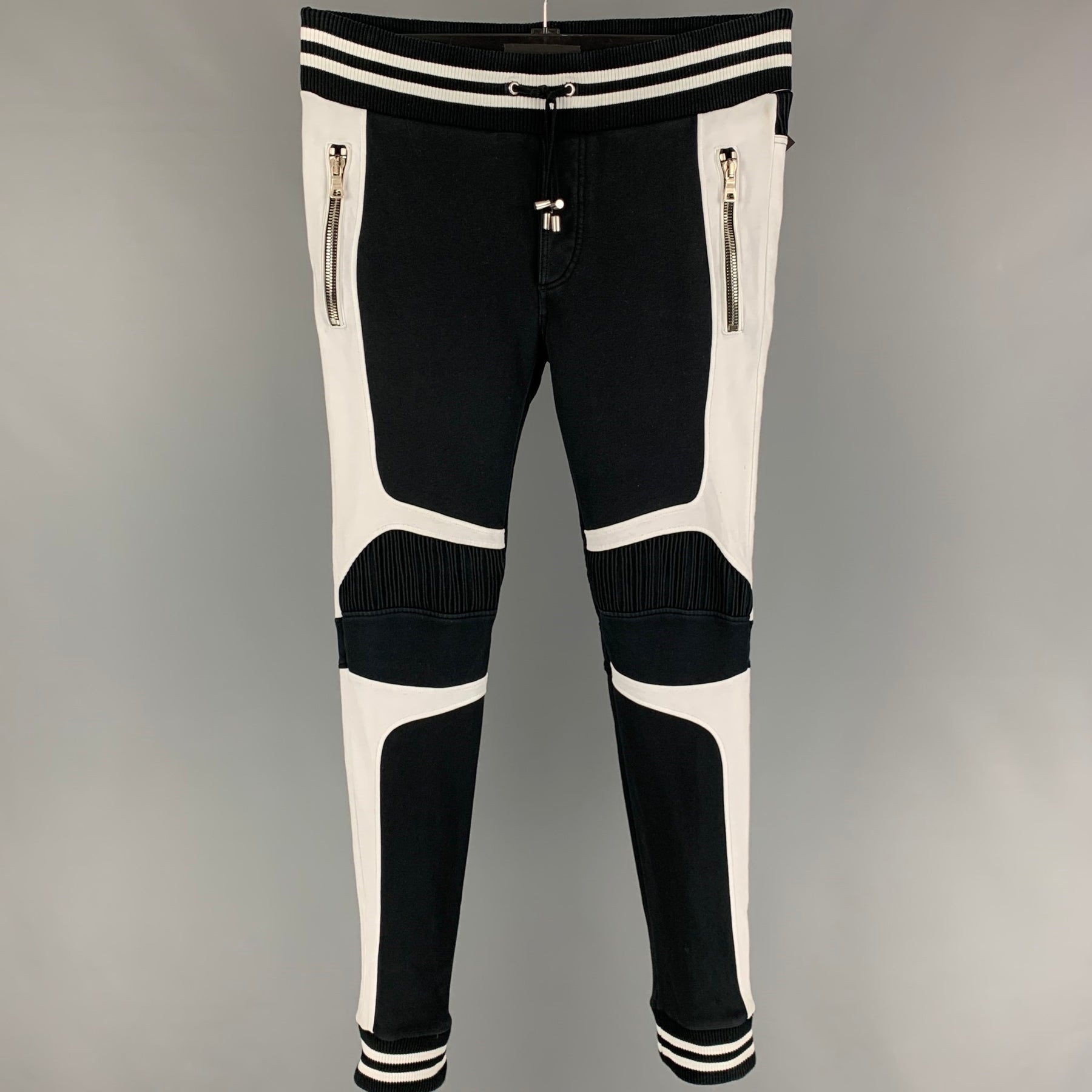BALMAIN Size M Black White Ribbed Cotton Joggers Pants