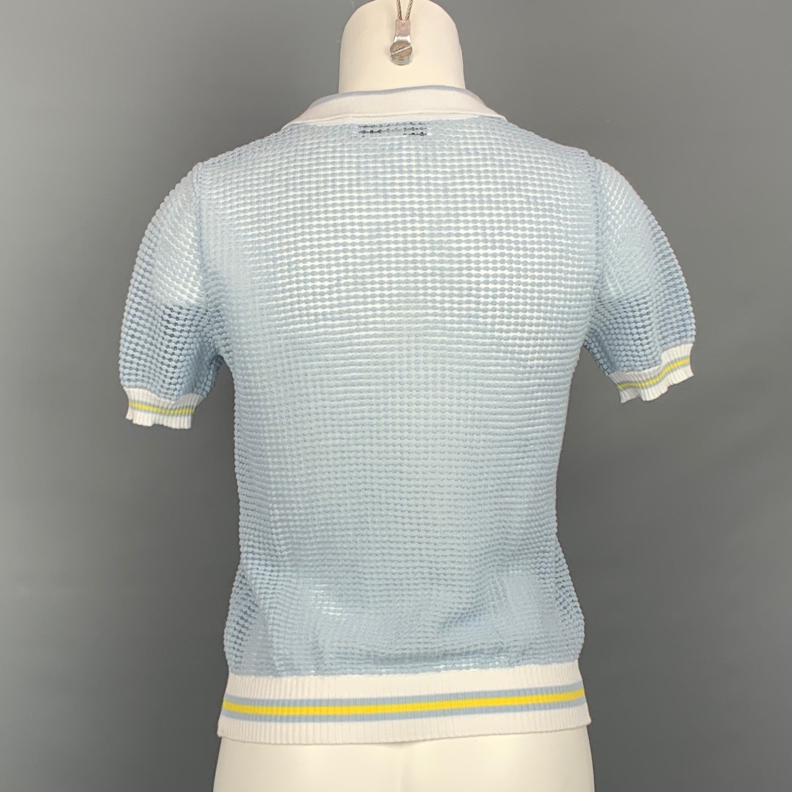 BLUMARINE Size 2 Light Blue & White Textured Polo Shirt