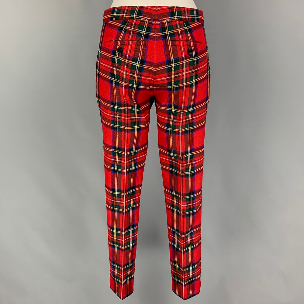 BURBERRY LONDON Size 2 Red Multi-Color Wool Plaid Tapered Dress Pants